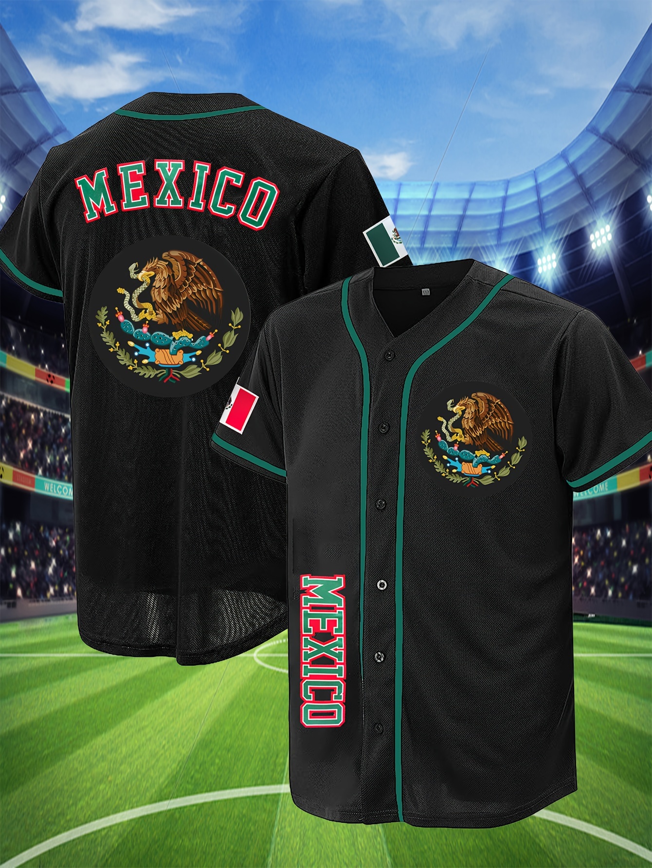 Men's Black Baseball Shirt, Classic Letter Embroidery Design, Breathable Button Style Short Sleeved Shirt, Suitable For Training And Games