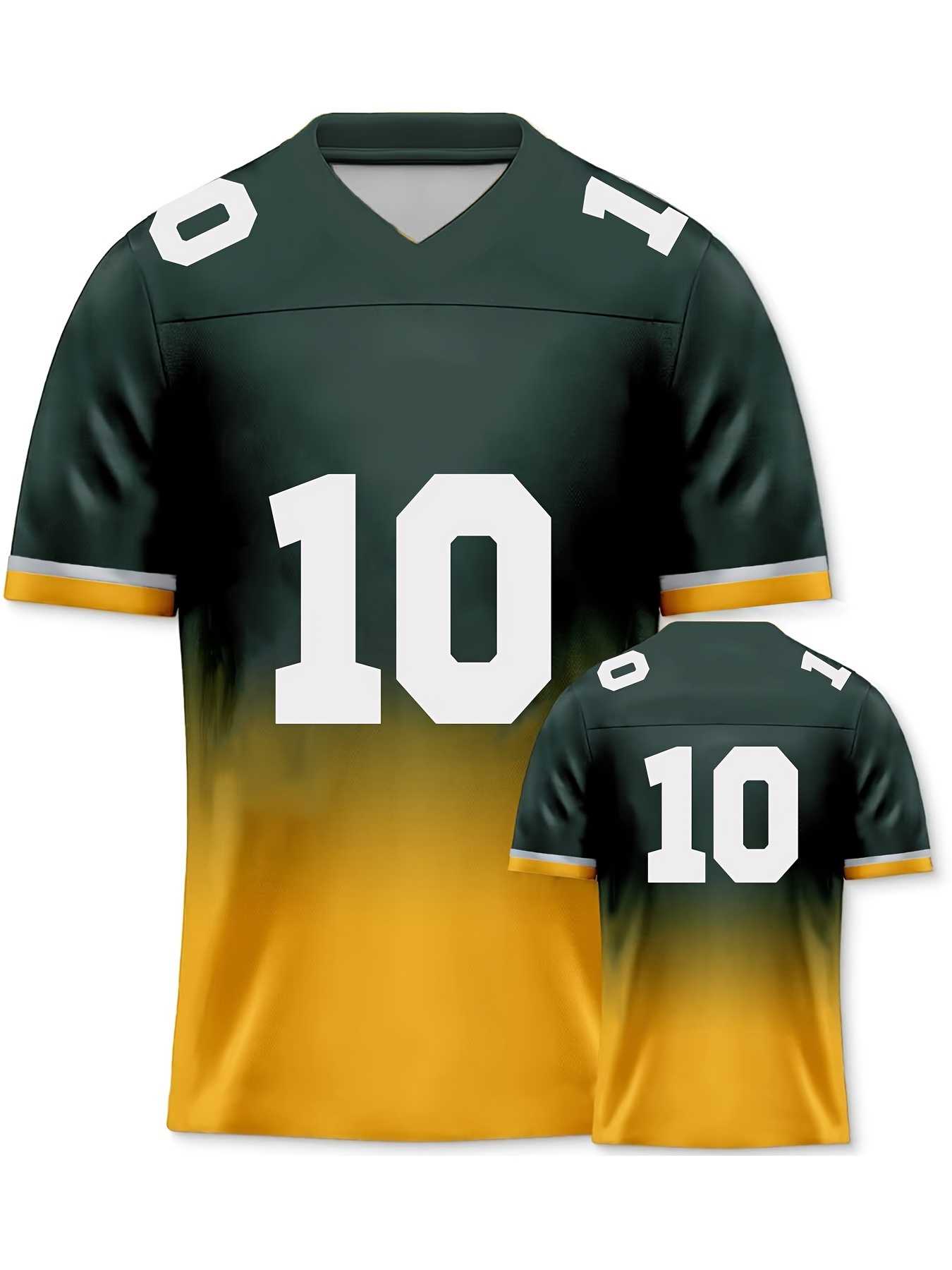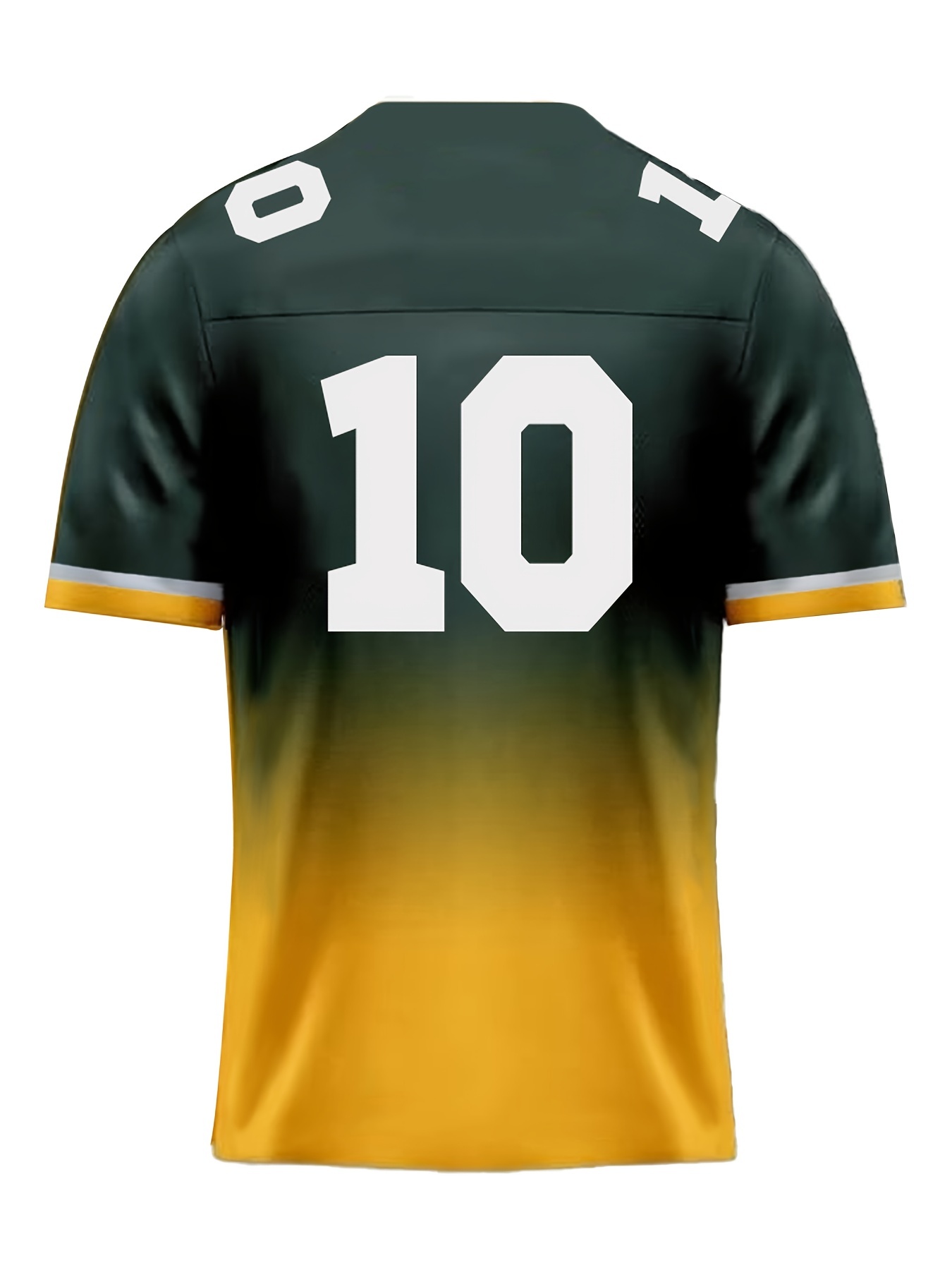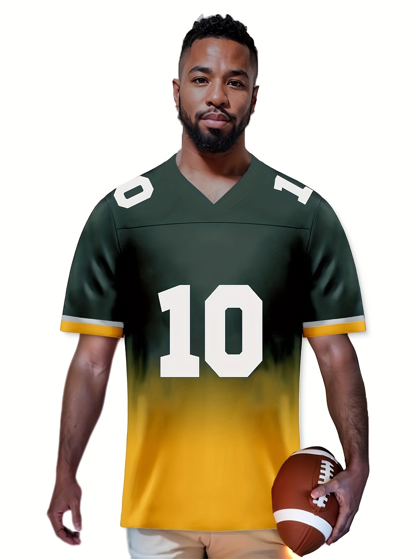 Men's Green Bay #10 Polyester Green Football Jersey, Men Gradient V-Neck Sports Shirt With Slight Stretch, Breathable Casual Knit Fabric For All Seasons, Loose Fit Adult & Teen, Fans Gift Men Youth