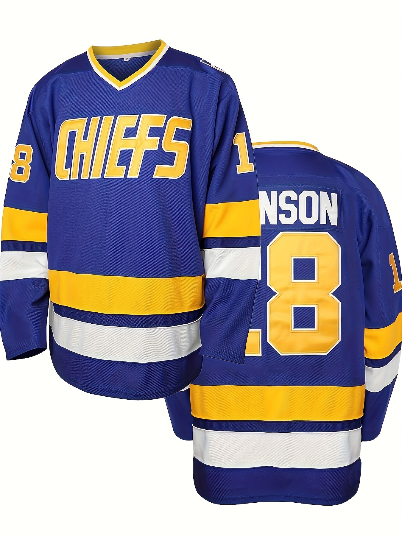 1pc SheLucki Men'S Ice Hockey Jersey - Polyester V-Neck Sweatshirt with Embroidered Lettering, Loose Fit Long Sleeve Top for Sports, Casual, Outdoor Activities - All Seasons