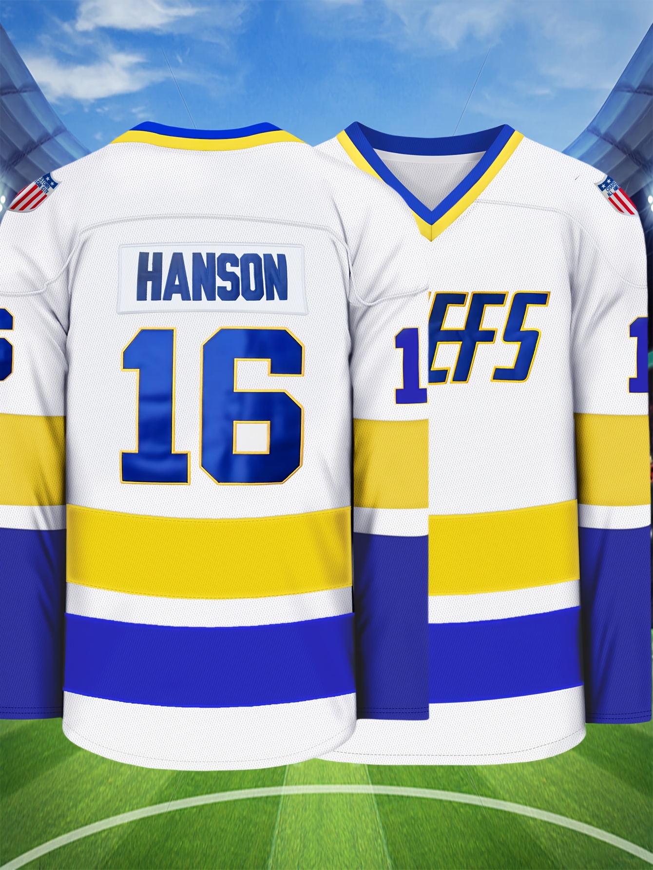 Men's #16 White Ice Hockey Jersey - Breathable, Embroidered Long Sleeve V-Neck Sweatshirt for Sports & Casual Wear