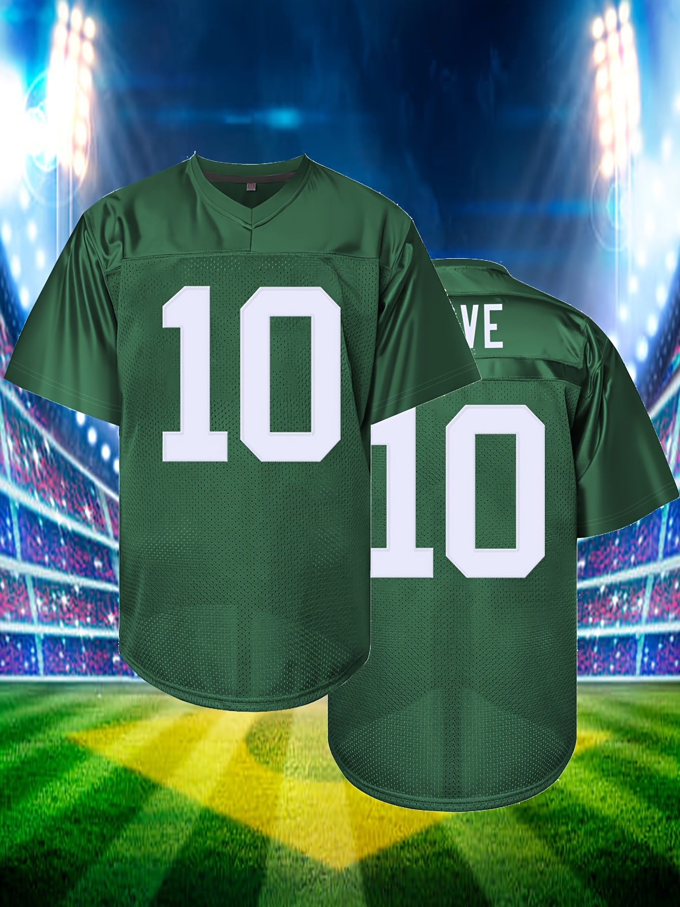Men's Green # 10 Rugby Jacket Loose Embroidered Sports, Fashionable, Casual, Street Breathable Rugby Top