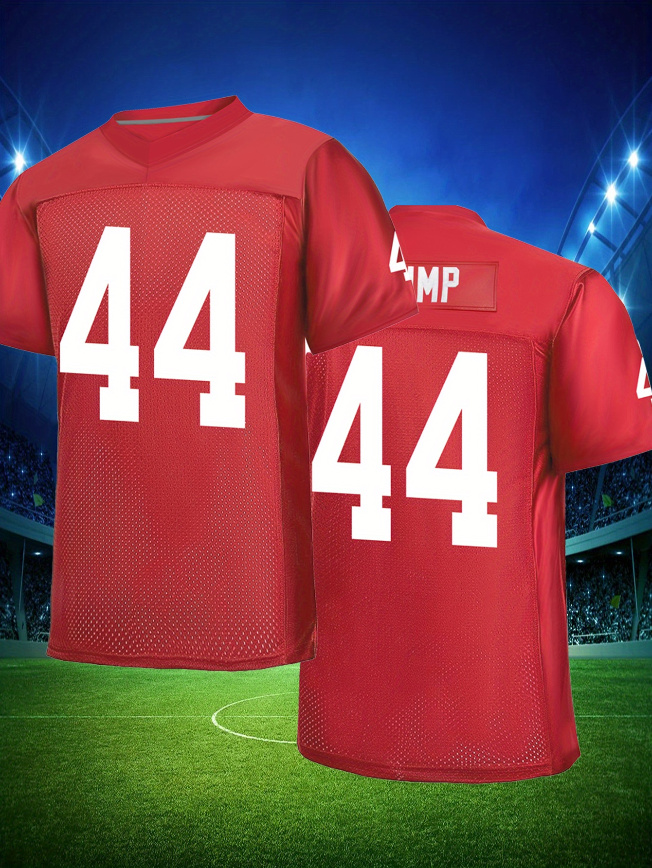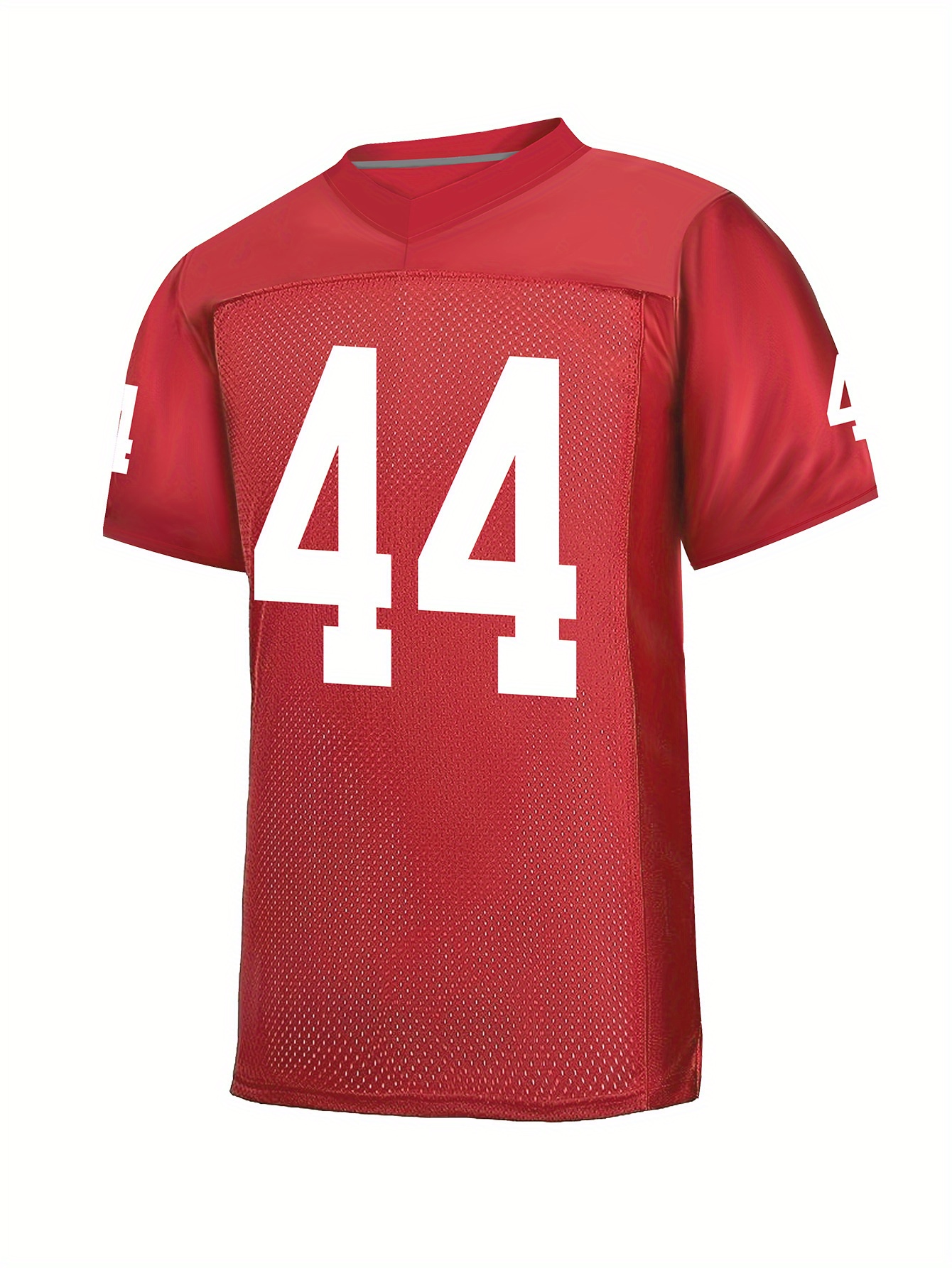 Men's Red #44 Embroidered Rugby Jersey - Loose Fit, Breathable Mesh Fabric, V-Neck Sports Top for Casual & Athletic Wear