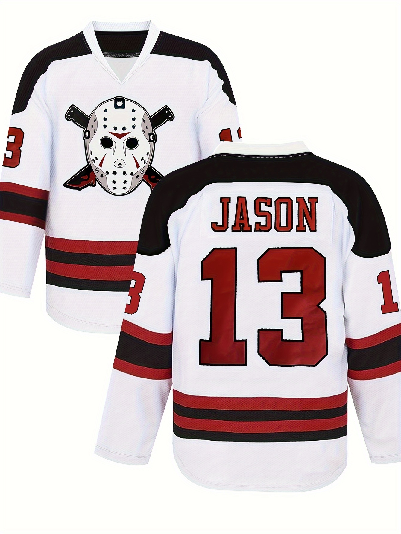Men's white # 13 ice hockey sports shirt, loose embroidered long sleeves, sporty and fashionable casual, street breathable