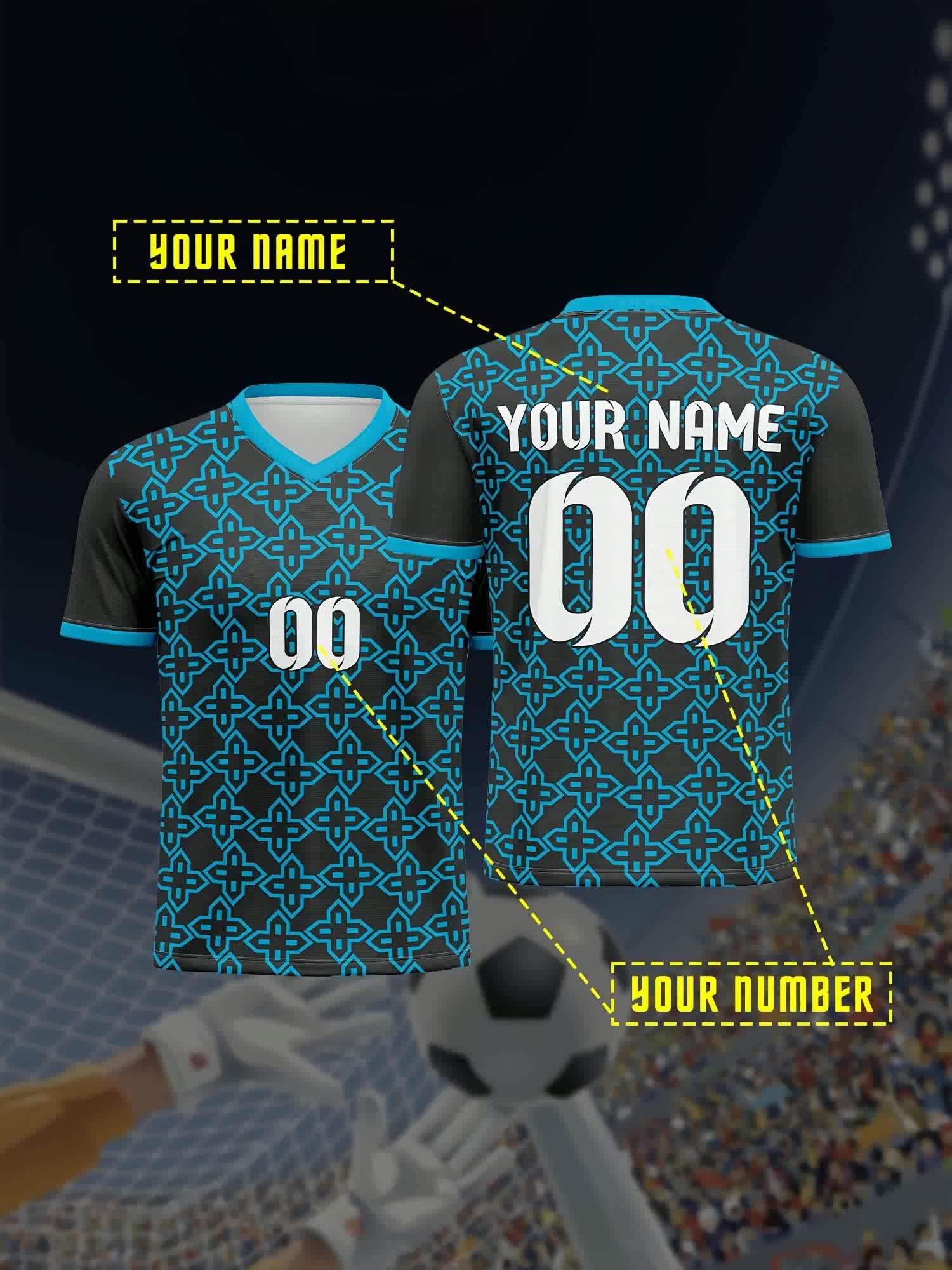 1pc Customizable Soccer Jersey for Kids - V-Neck Football Shirt with Personalized Name & Number, 100% Polyester Knit Fabric, Medium Stretch, Preppy Street Style, All-Season Sports & Casual Top for Boys & Girls
