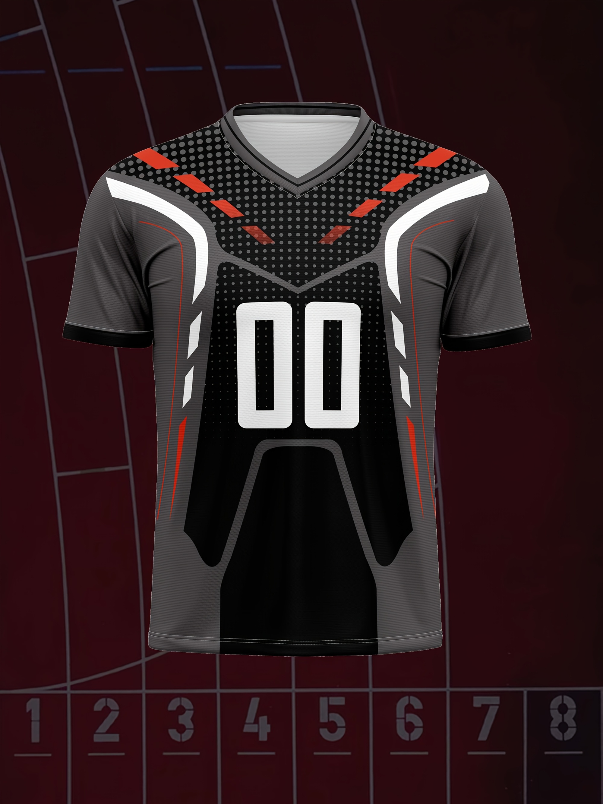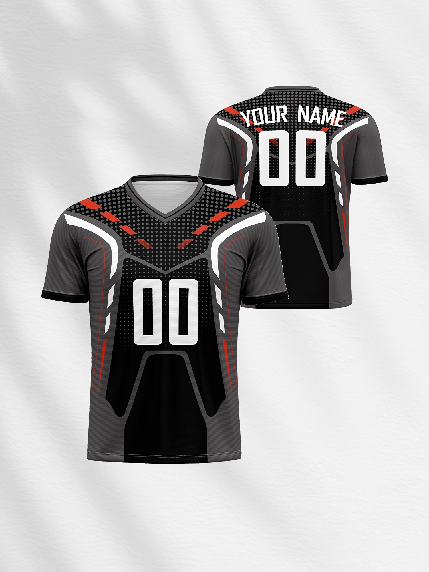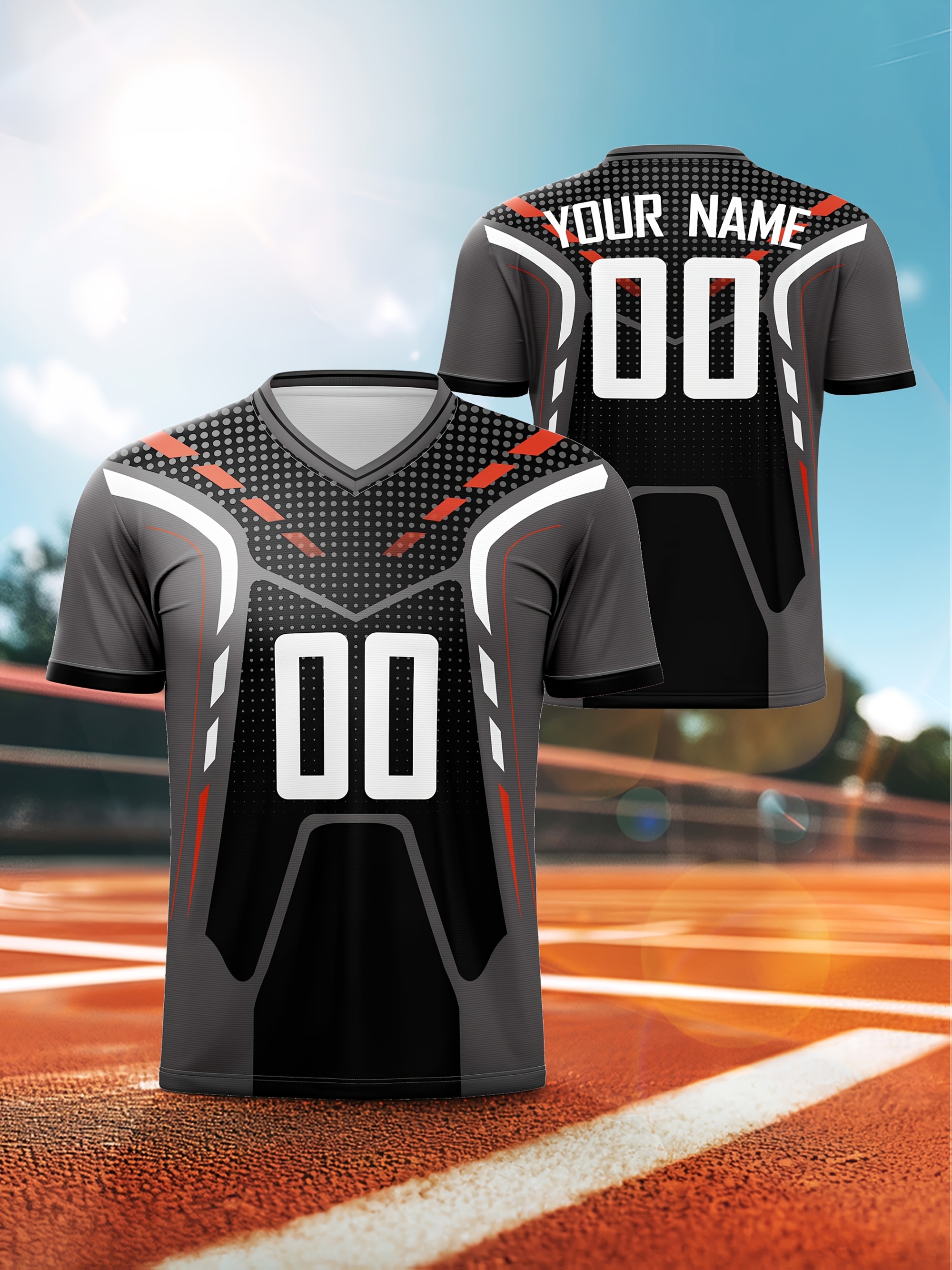 Customizable Youngsters' V-Neck Football Jersey - Personalized Name & Number, Comfortable Polyester Blend, Ideal for Sports & Outdoor Activities, Machine Washable - Black with Red & Gray Accents, Youth Football Accessories