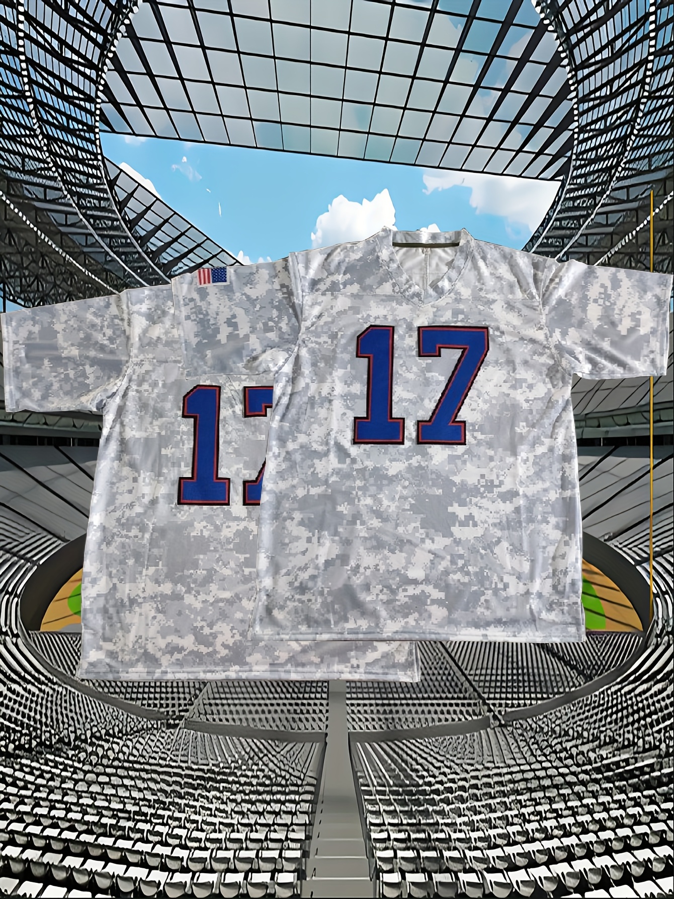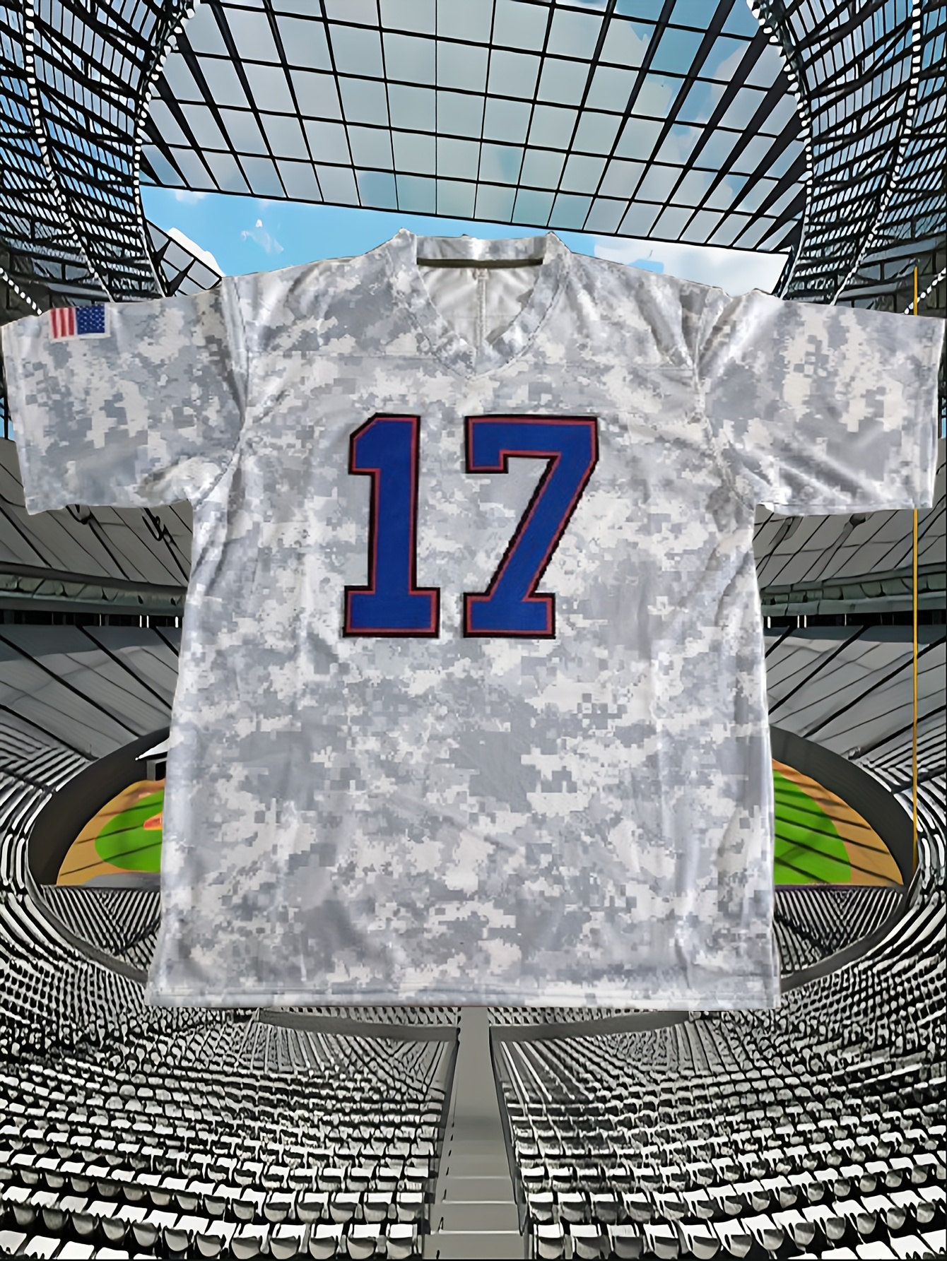 Men's #17 Camo Rugby Jersey - V-Neck,, Loose Fit for Training, Team Sports & Casual Wear, Sizes S-XXXL
