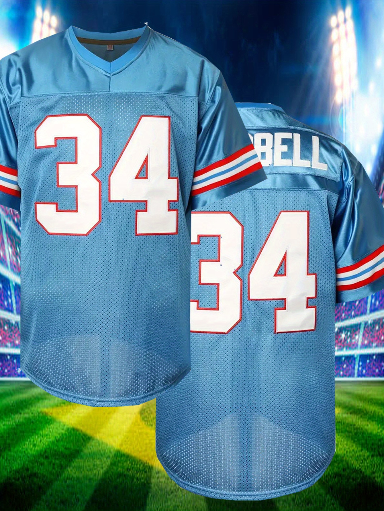 Men's #34 Embroidered Rugby Jersey - Light Blue Loose Fit V-Neck Sports Top, Breathable Polyester for Casual & Game Day, SHLUCKI