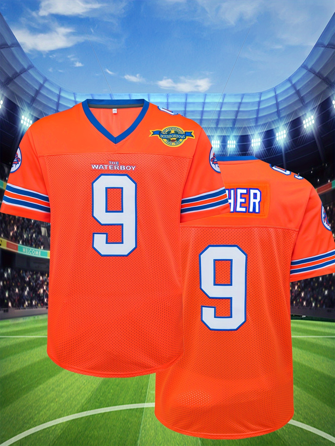 1pc Men'S American Football Jersey - Polyester V-Neck Top with Embroidered Alphabet & Logo, Breathable Knit Fabric, Loose Fit for Sports, Casual, Outdoor Activities - Four Seasons Wear