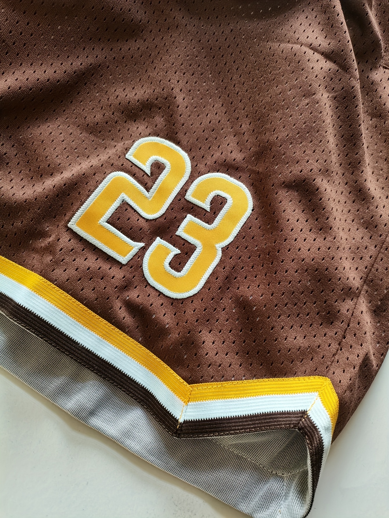 1pc Men'S Polyester Basketball Shorts - #23 Embroidered, Breathable Knit Fabric, Slight Stretch, Loose Fit for Training & Competition, Sports & Casual Style for All Seasons