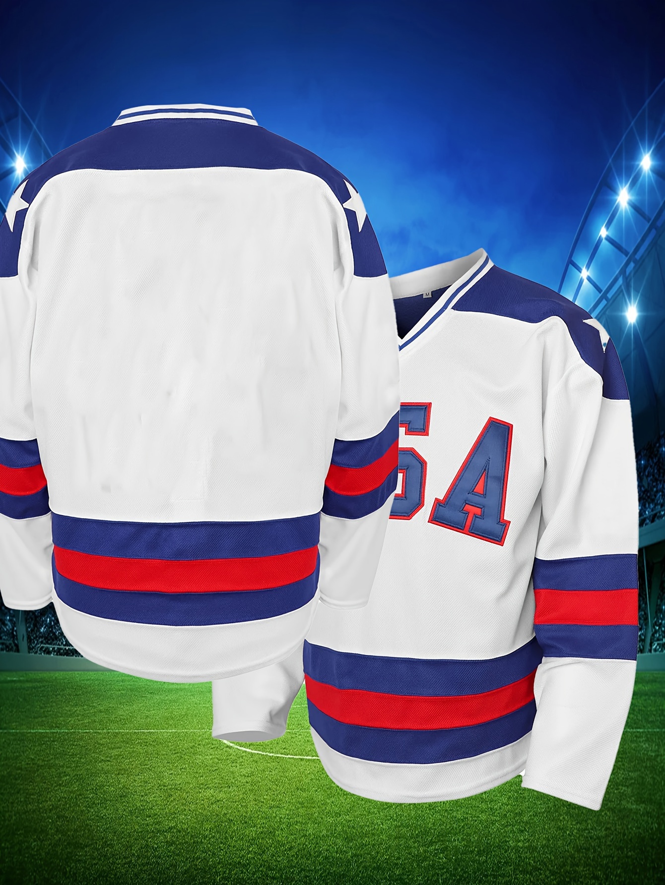 1pc SheLucki Men'S Ice Hockey Jersey - Embroidered Alphabet Pattern, V-Neck, Loose Fit, Knit Polyester, Slight Stretch, Breathable for Sports & Casual Wear, Four Seasons