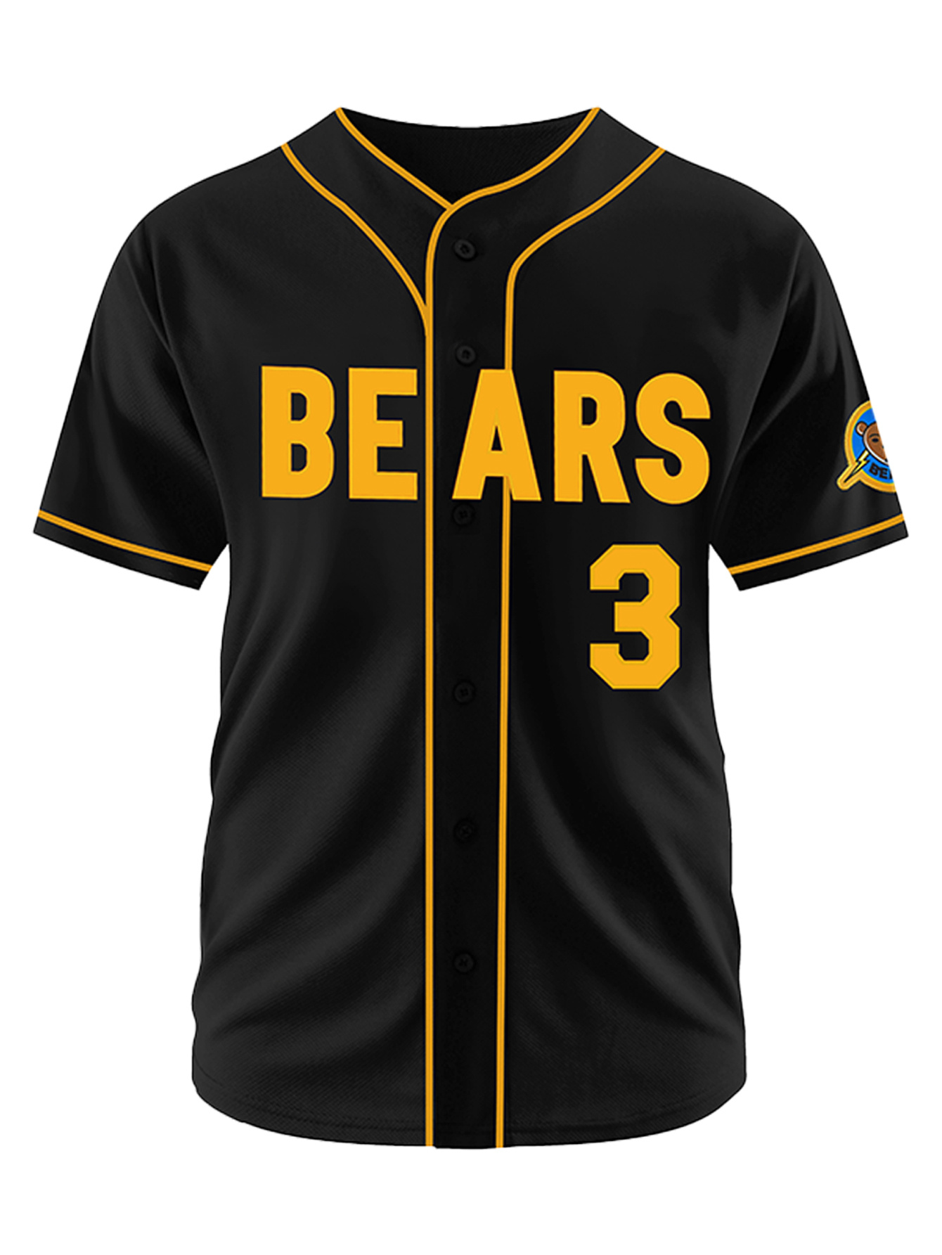 Men's #3 Bear Embroidered Baseball Jersey - Black & Yellow, Loose Fit, Breathable V-Neck, Casual Streetwear for Sports & Outdoor Activities, Outdoor Activewear | Striped Sports Shirt | Durable Embroidery