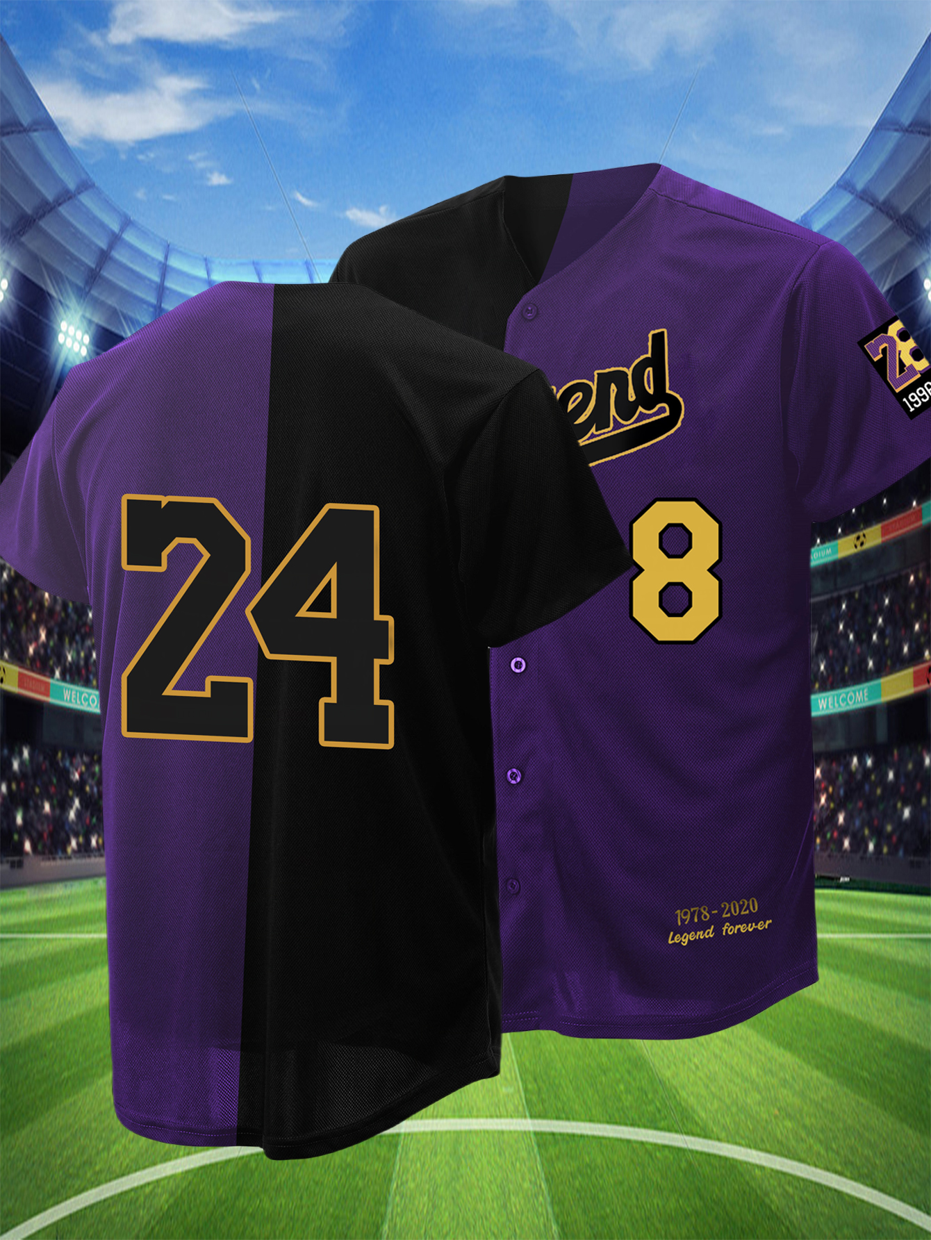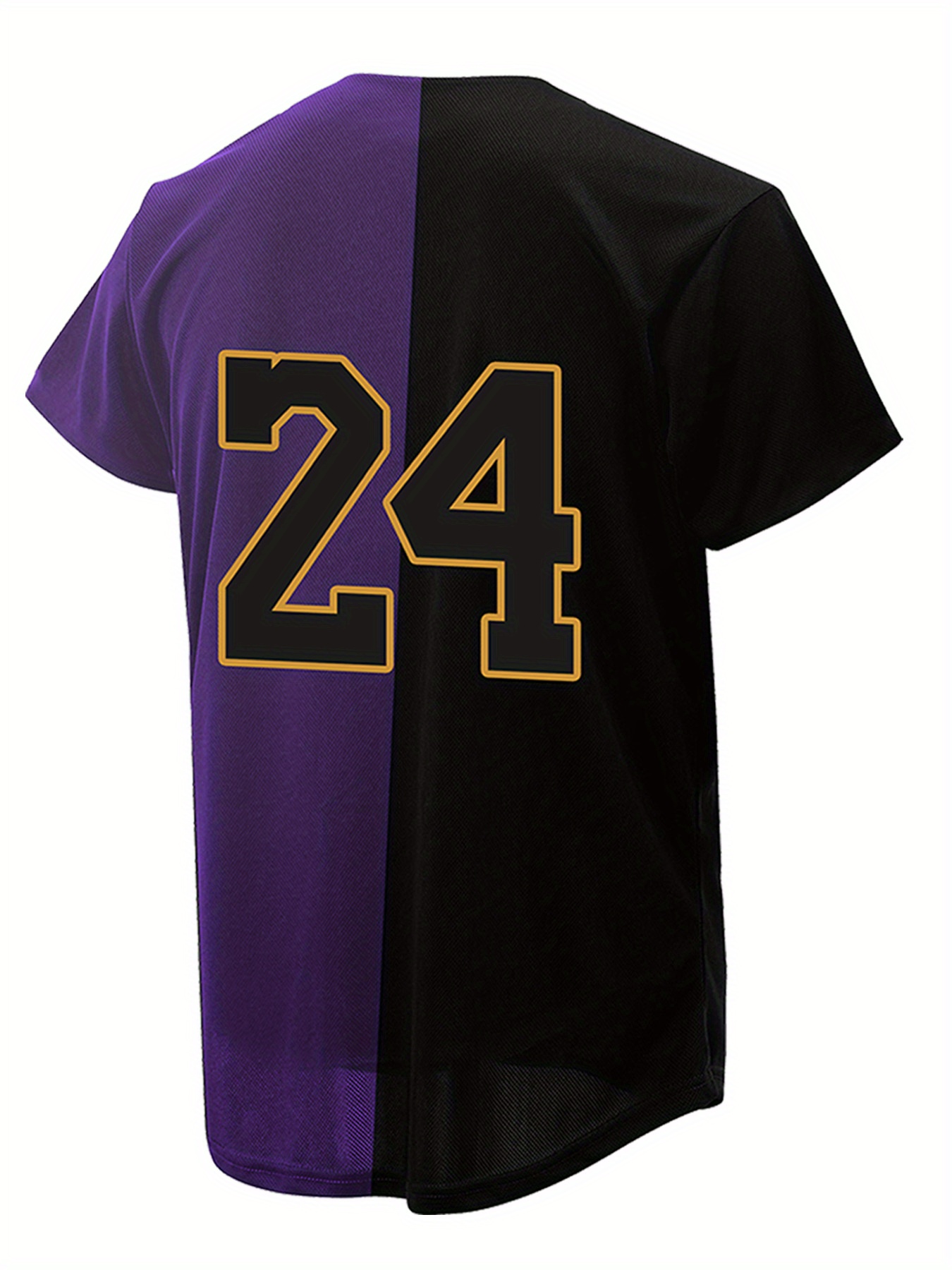 Men's #8-24 Baseball Jersey - Classic Design, Breathable V-Neck Short Sleeve Shirt for Training & Competition, Black & Purple Two-Tone Style, Competition Apparel | Vneck Sports Shirt | Quality Sports Garment