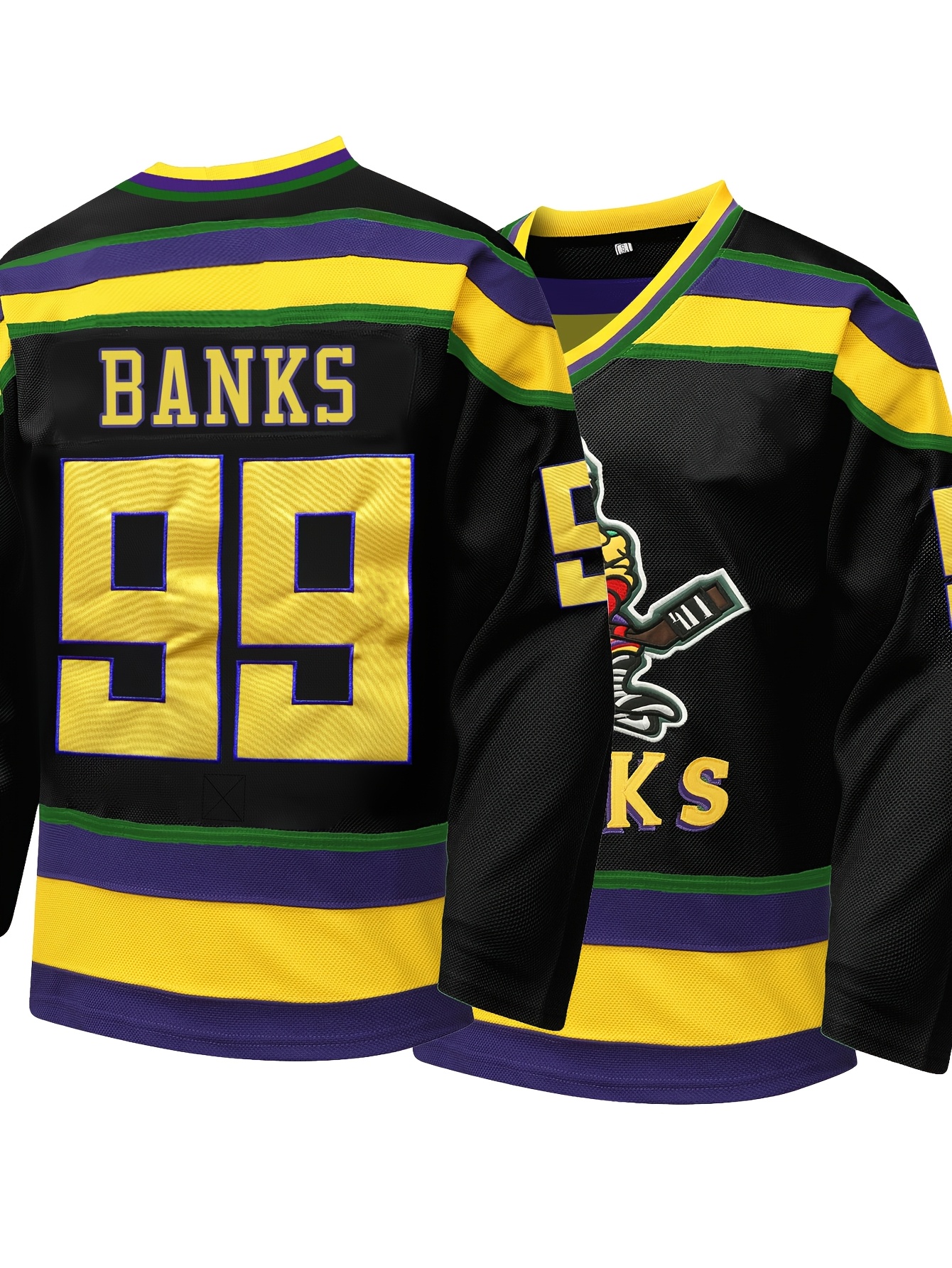 Men's #99 Black & Golden Ice Hockey Jersey - Embroidered, Breathable Polyester, V-Neck Captain's Sweatshirt with Striped Accents - Sporty & Casual Wear for All Seasons