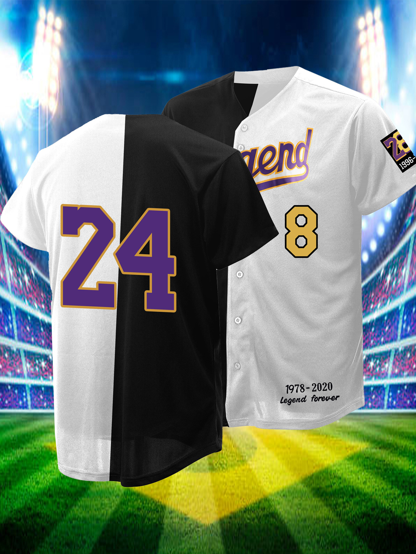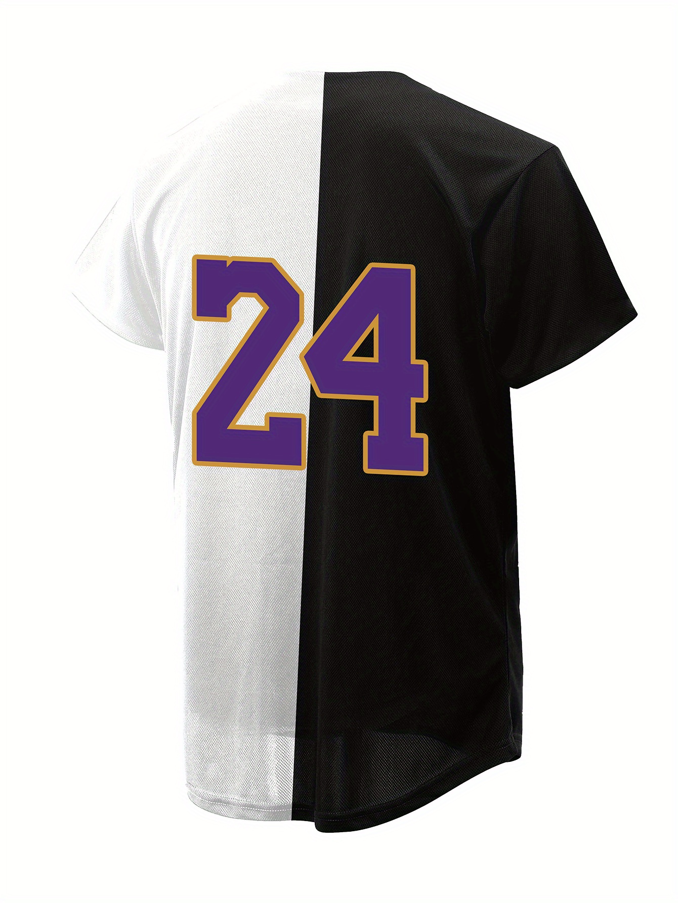 Men'S Black And White # 8-24 Baseball Shirt, Classic Letter Embroidery Design, Button Style Short Sleeved Breathable Shirt, for Training And Competition Use