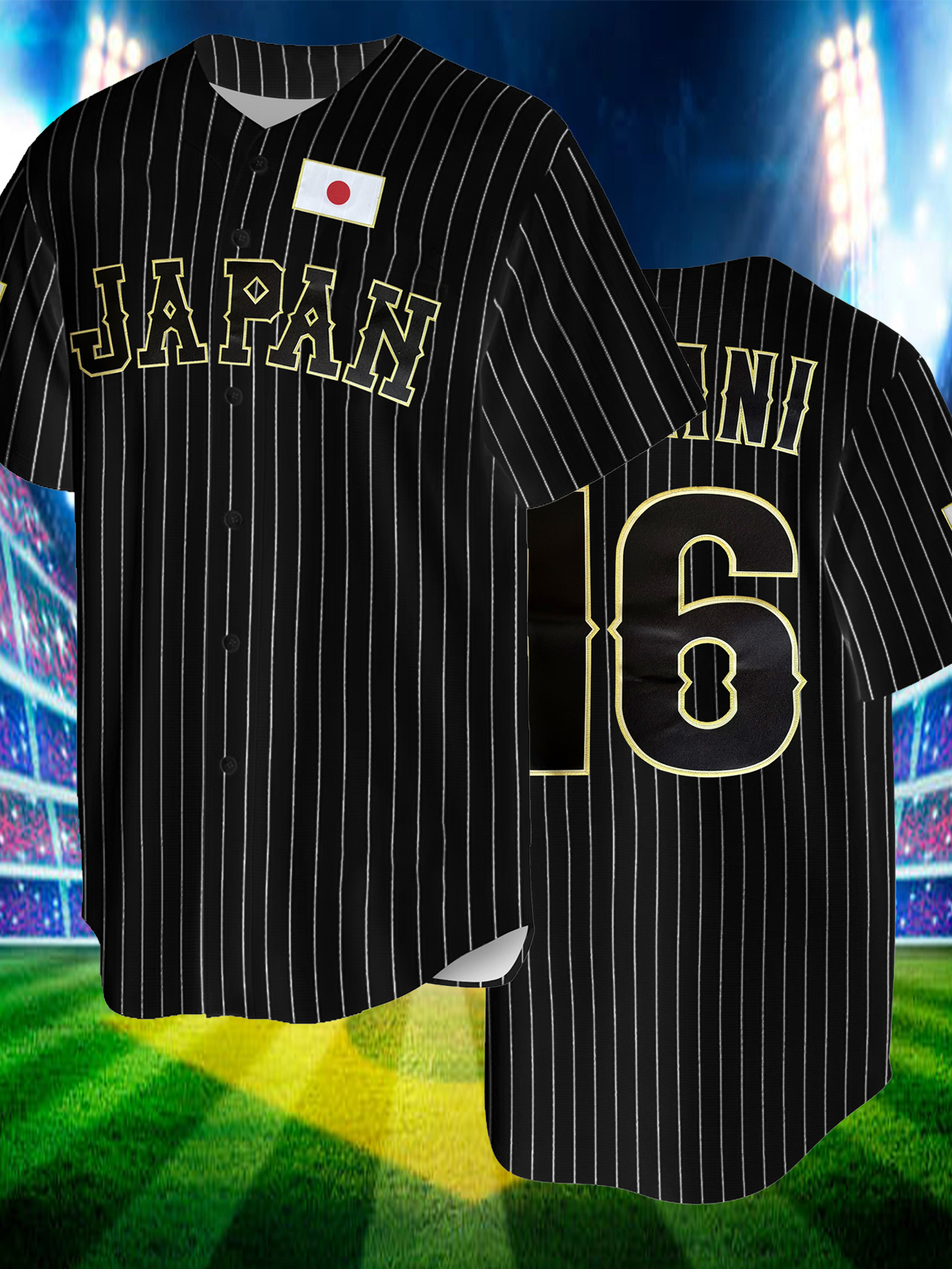 Men'S Black Striped # 16 Baseball Shirt, Classic Letter Embroidery Design, Button style Short Sleeve Breathable Shirt, Training and Competition Category: Men'S Baseball Shirt