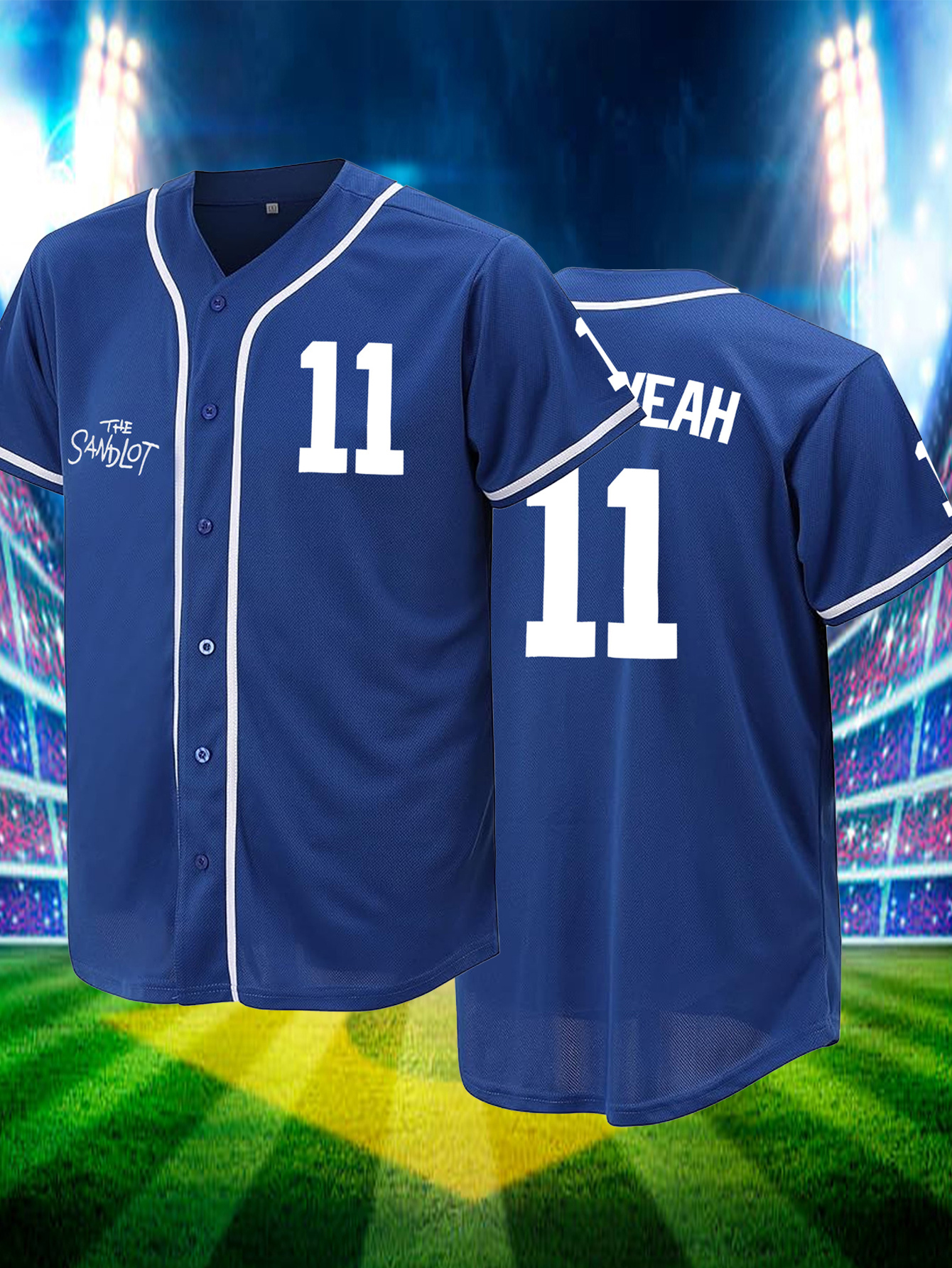 Men'S Blue # 11 Baseball Shirt, Classic Letter Embroidery Design, Button style Short Sleeve Breathable Shirt, Training and Competition Category: Men'S Baseball Shirt