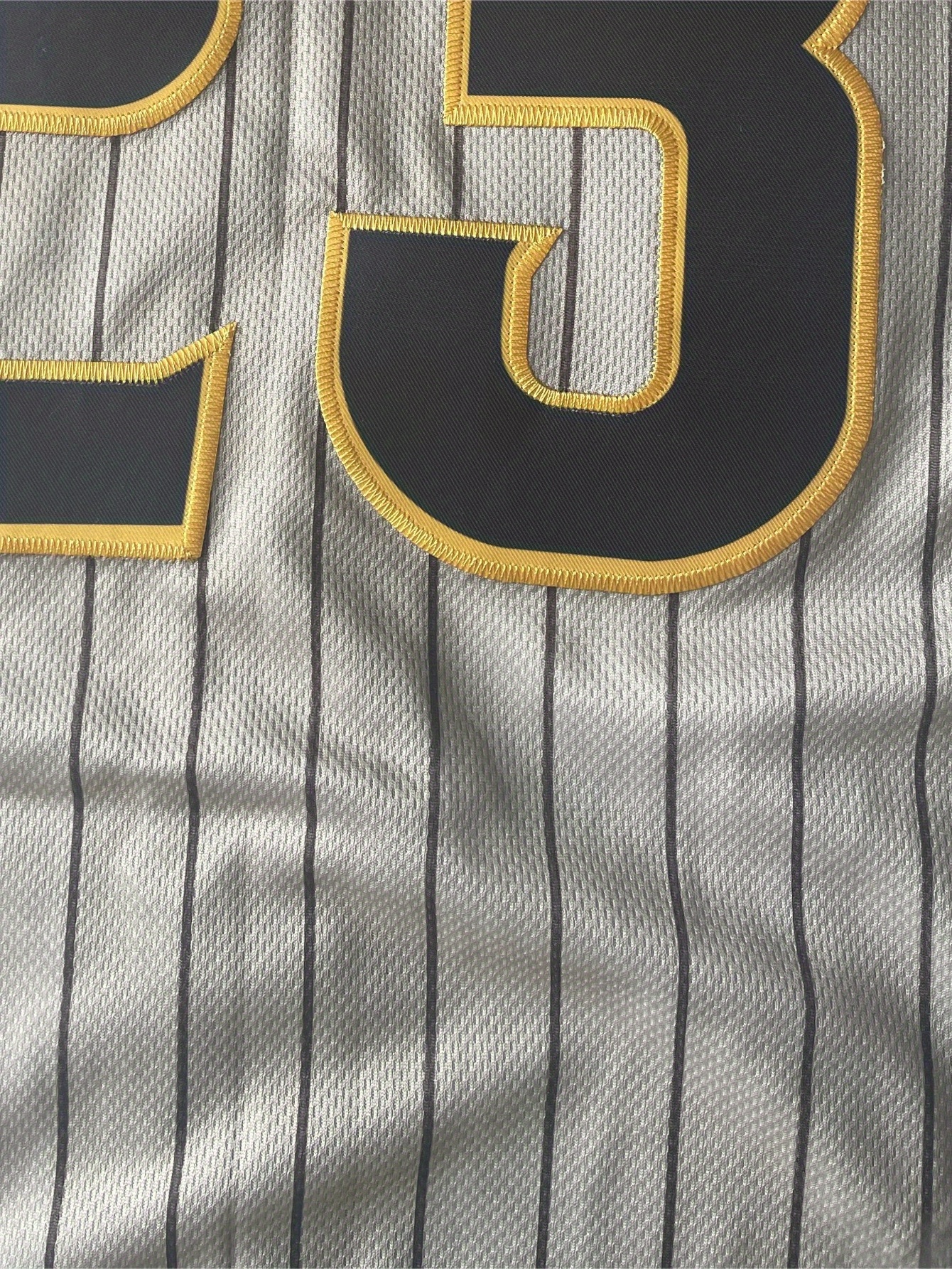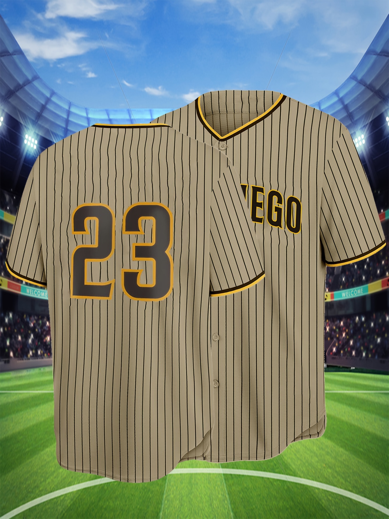 Men's Brown Striped #23 Baseball Shirt - Loose Fit Embroidered Sportswear with V-Neck & Button Closure, Breathable Fabric for Casual Streetwear, Outdoor Activities & All-Season Comfort (Adults & Teens), Sports Apparel, Sporty Design, Embroidered Detailing