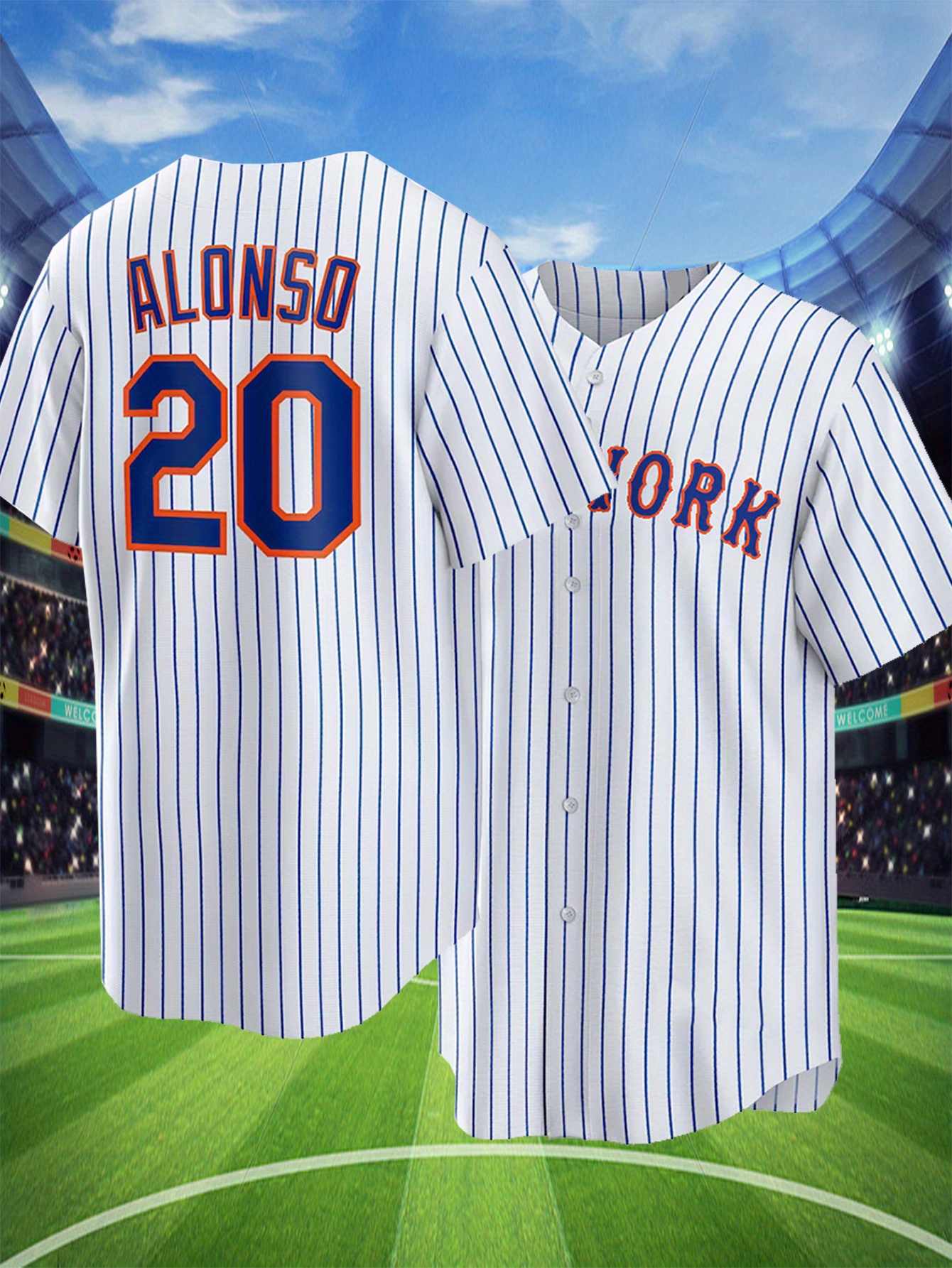 Men's White Striped #20 Baseball Shirt - Breathable Button-Up V-Neck with Letter Design, Loose Fit for Training, Games & Casual Wear | All-Season Sportswear for Men & Teens, Baseball Jersey, Quality Embroidery Detail