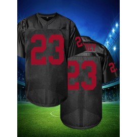Men's Black #23 Embroidered Rugby Shirt - Breathable Loose Fit V-Neck Jersey Top for Sports, Casual & Streetwear | All-Season Machine Washable Athletic Apparel, Rugby Jersey, Breathable Fabric