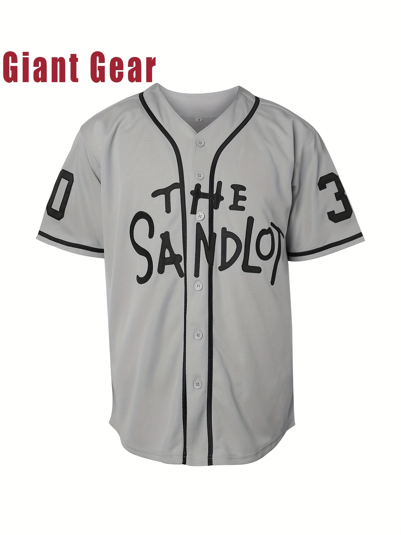 Men's Gray Embroidered Polyester Baseball Shirt # 30 Loose Knit Fabric Breathable V-neck Sports Top Suitable for Spring, Summer, And Autumn Sizes S-3XL