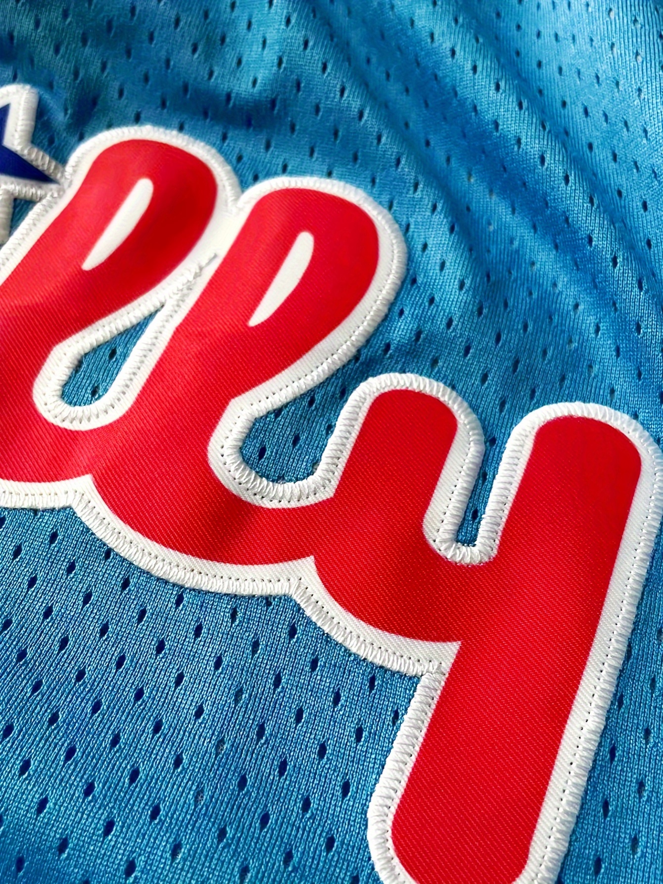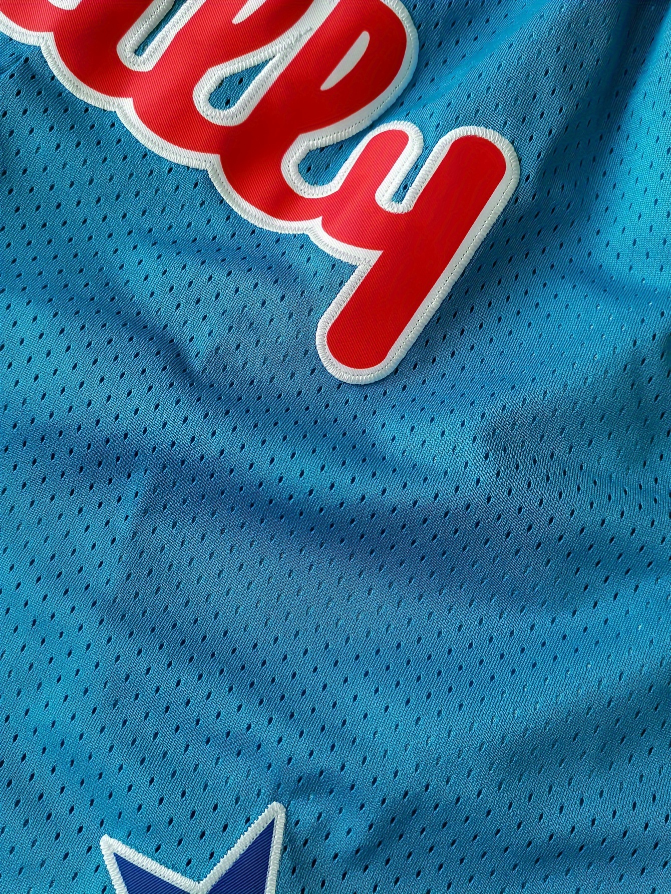 Men's Moon Blue Basketball Shorts, Classic Letter Embroidery Design, Breathable Button Style Short Sleeved Shirt, Suitable For Training And Competition