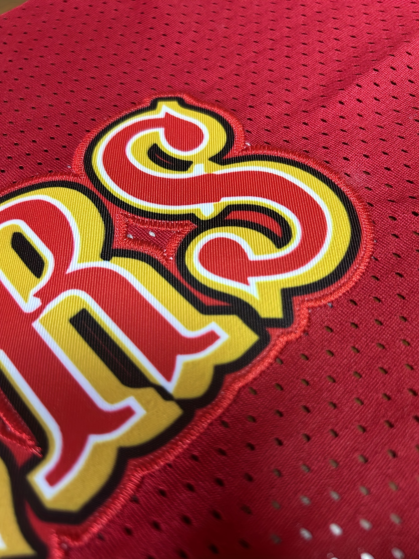 Men's Red # 16 Basketball Shorts, Classic Letter Embroidery Design, Breathable Button Style Short Sleeve Shirt, Suitable For Training And Competition