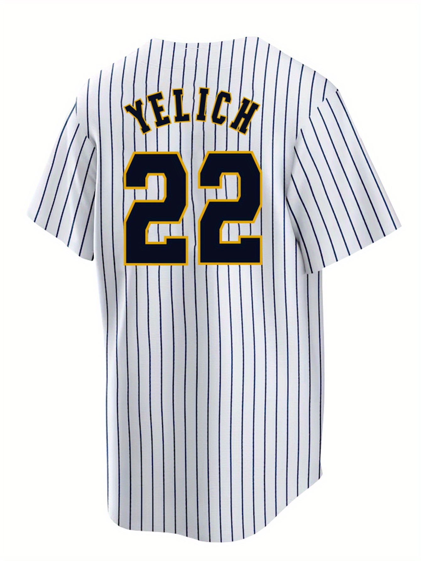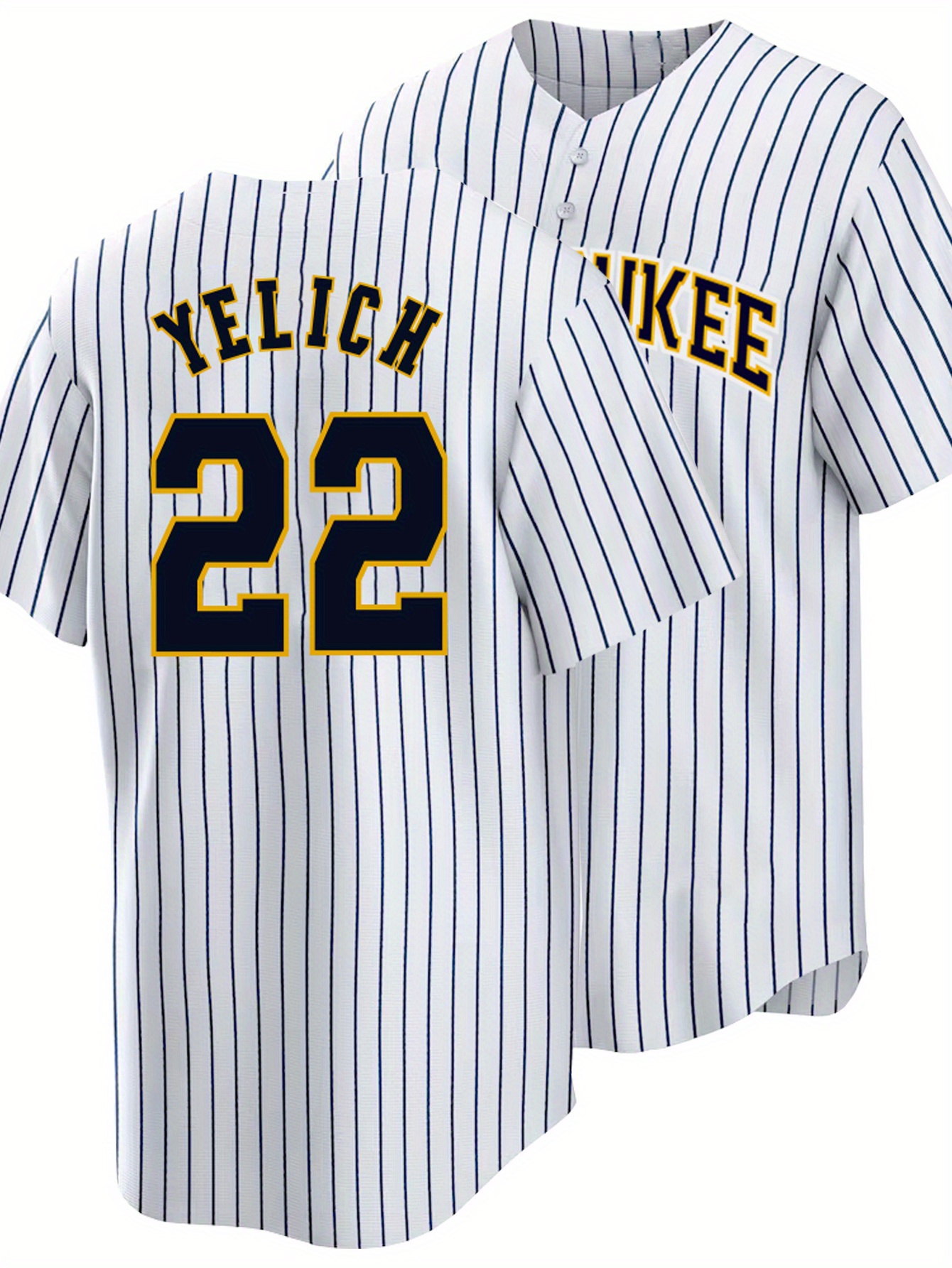 Men'S White Blue Stripe # 22 Baseball Jersey, Button Style Short Sleeved Breathable Shirt, Casual Loose Classic Letter Embroidery Design, Suitable for Training And Games