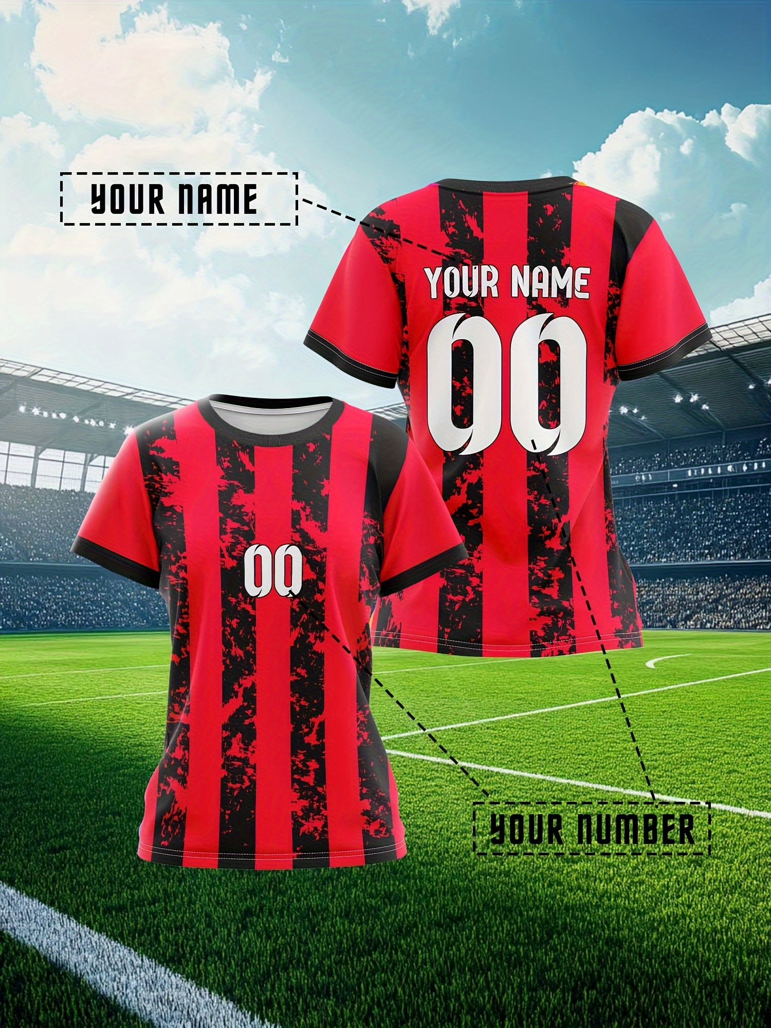 Women's Custom Soccer Jersey Personalized Name & Number - Two-Tone Red/Black Athletic Shirt, Quick-Dry Non-Stretch Fabric for Soccer Training, Games, Gym - Team Uniforms & Custom Orders Welcome, Sports Leisure Wear, Breathable Sportswear
