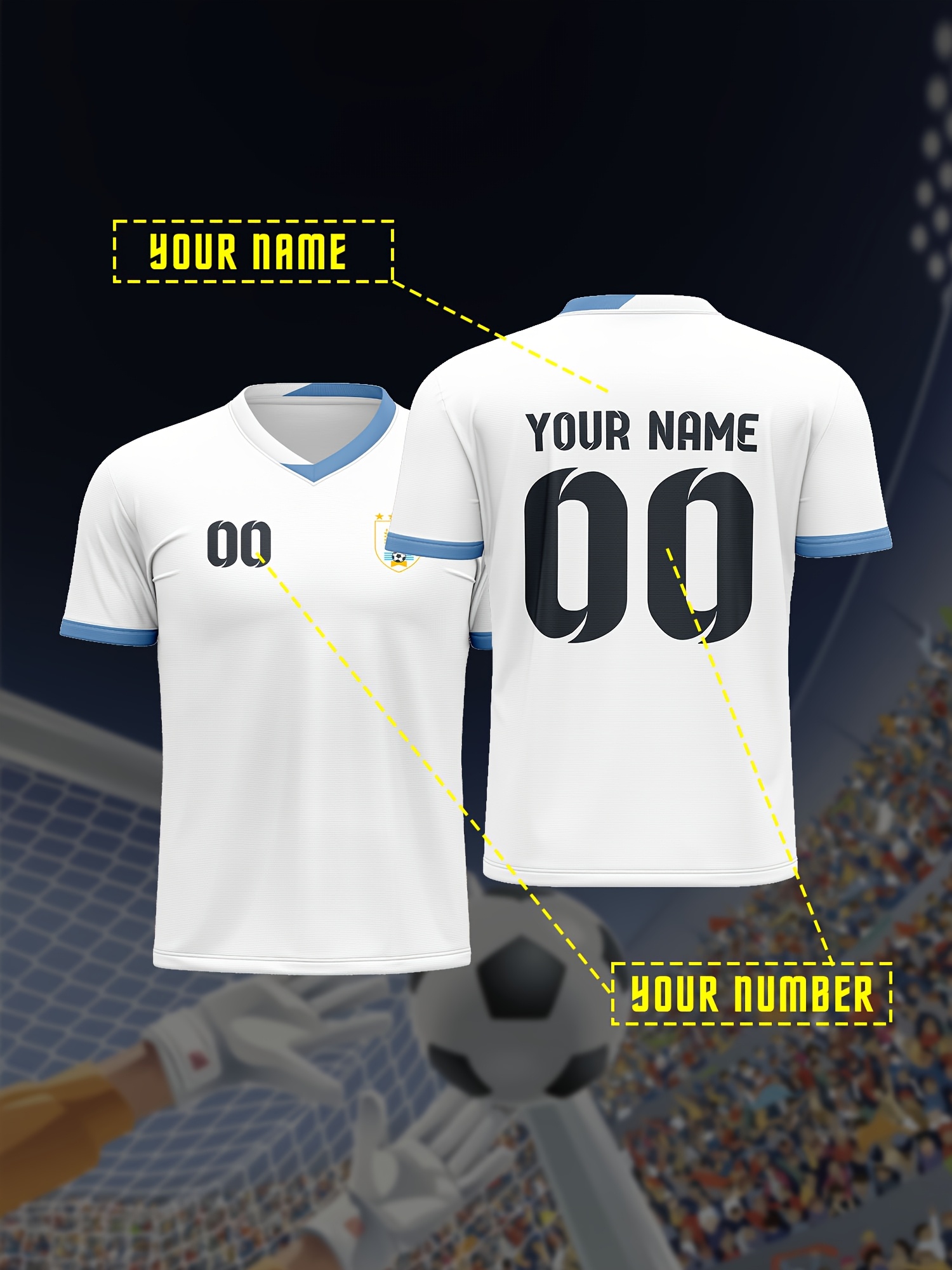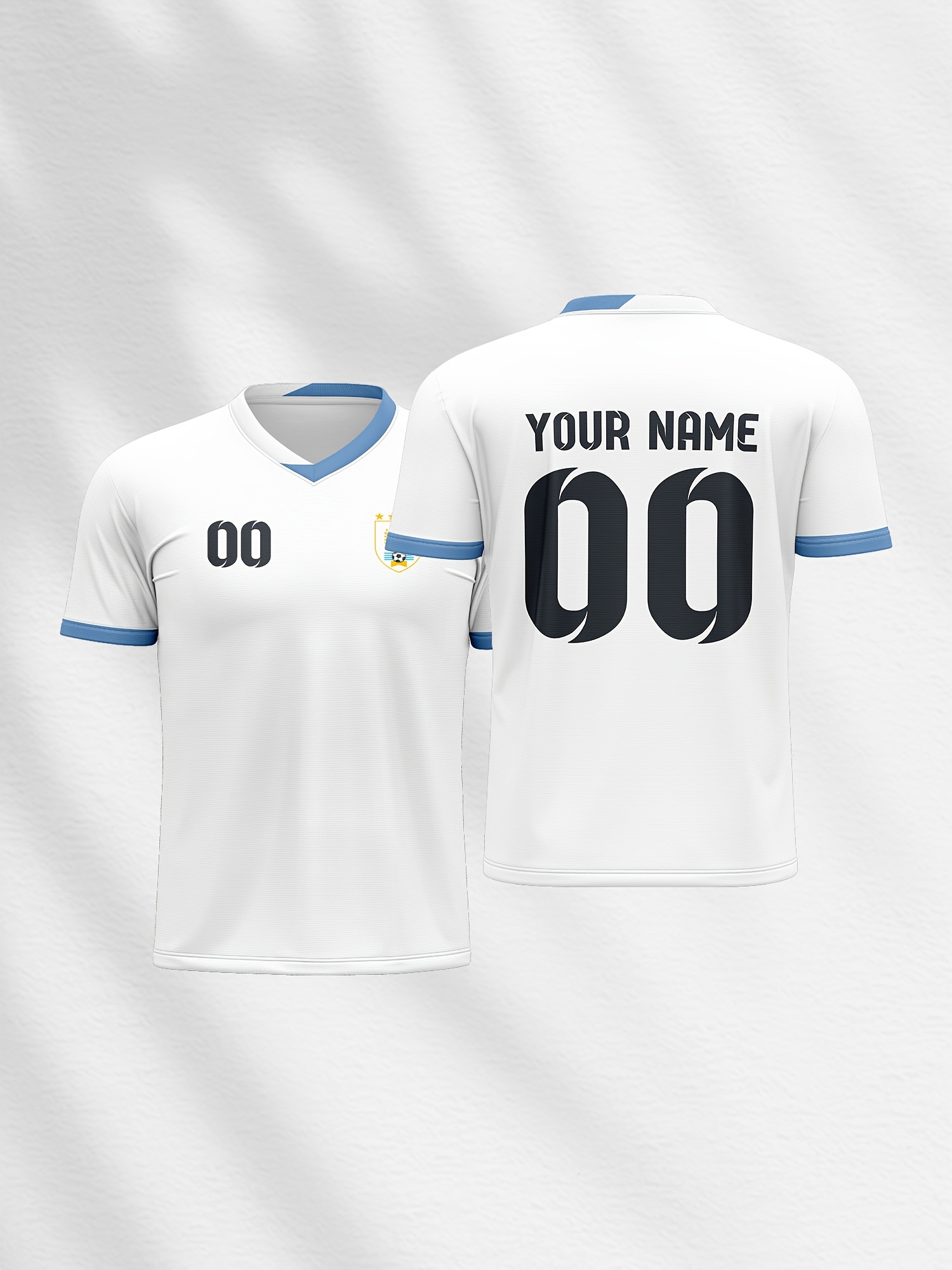 1pc Customizable Soccer Jersey for Kids - Personalized Name & Number, V-Neck, Knit Polyester, All-Season Sports & Casual Top for Boys & Girls, Preppy Street Style, Medium Stretch, Party & Beachwear