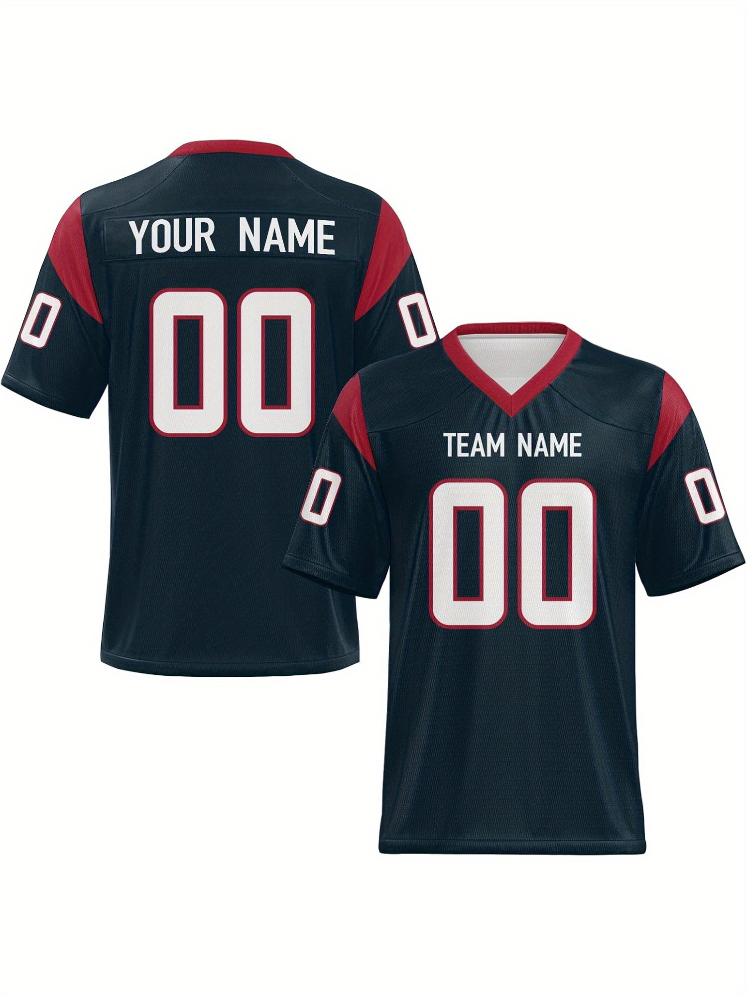 Customizable Football Jersey - Personalized Name & Number, V-Neck Sleeveless Design, Red with Black Trim & Number 00, Breathable Fabric for Outdoor Sports & Casual Wear, Summer Athletic Apparel, Custom Football Jersey, Durable Sportswear