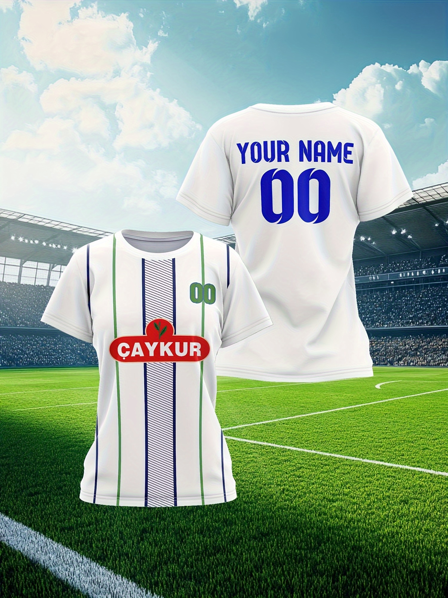 Customizable Plus Size Women'S Soccer Jersey - Personalized Team Name & Number, Breathable Athletic Shirt with "CAYKUR" Logo, Soft Comfort Fit for Outdoor Sports, Soccer Accessories, PLUS SIZE