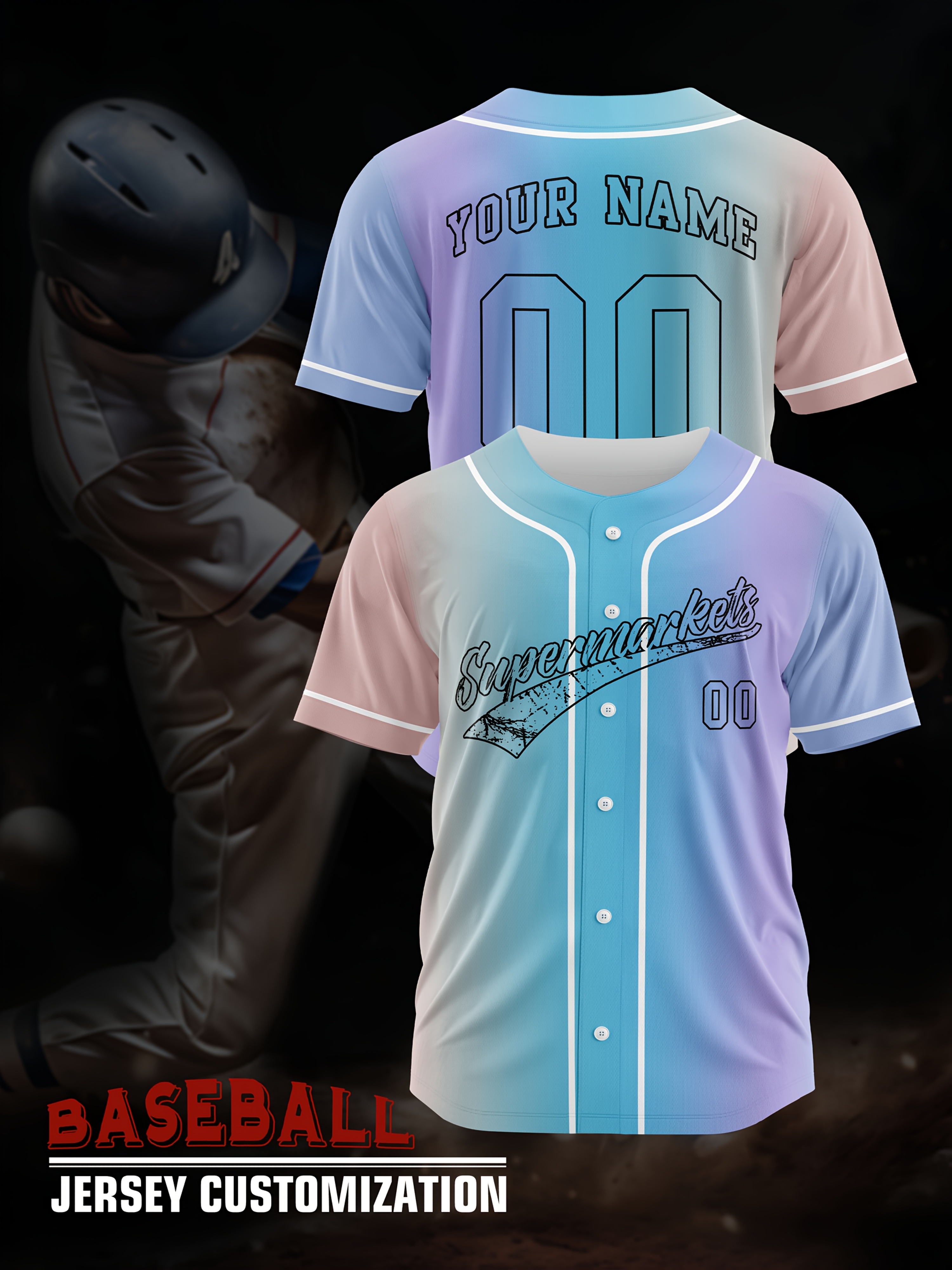 Customizable Youngsters' Baseball Jersey - Personalized Name & Number, Light Purple to White Gradient Design, Breathable Polyester, Perfect for Sports Training, Parties & Casual Wear, Youth Sports Apparel | Outdoor Activity Shirt | Durable Sports Jersey
