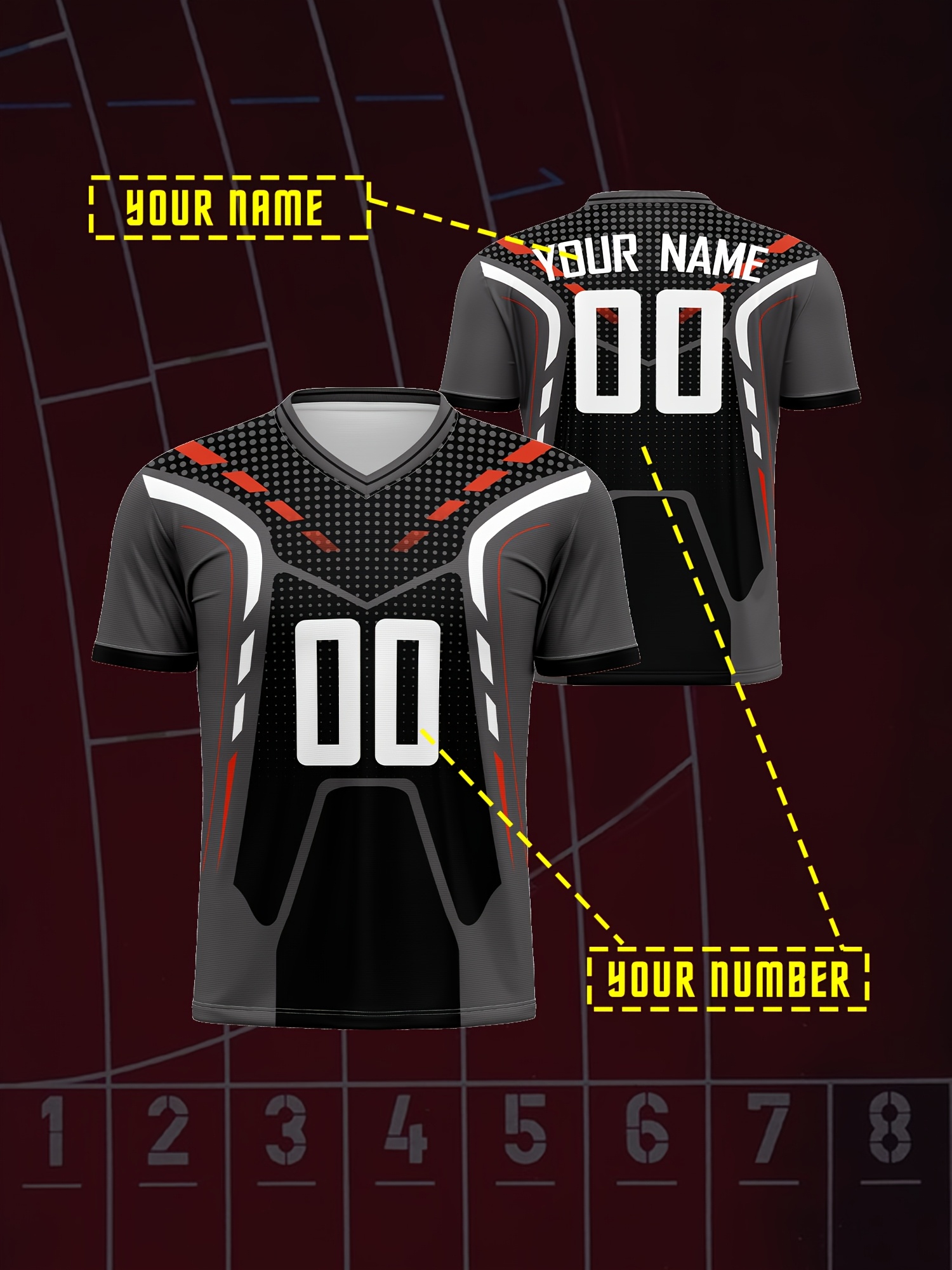 Customizable Youngsters' V-Neck Football Jersey - Personalized Name & Number, Comfortable Polyester Blend, Ideal for Sports & Outdoor Activities, Machine Washable - Black with Red & Gray Accents, Youth Football Accessories