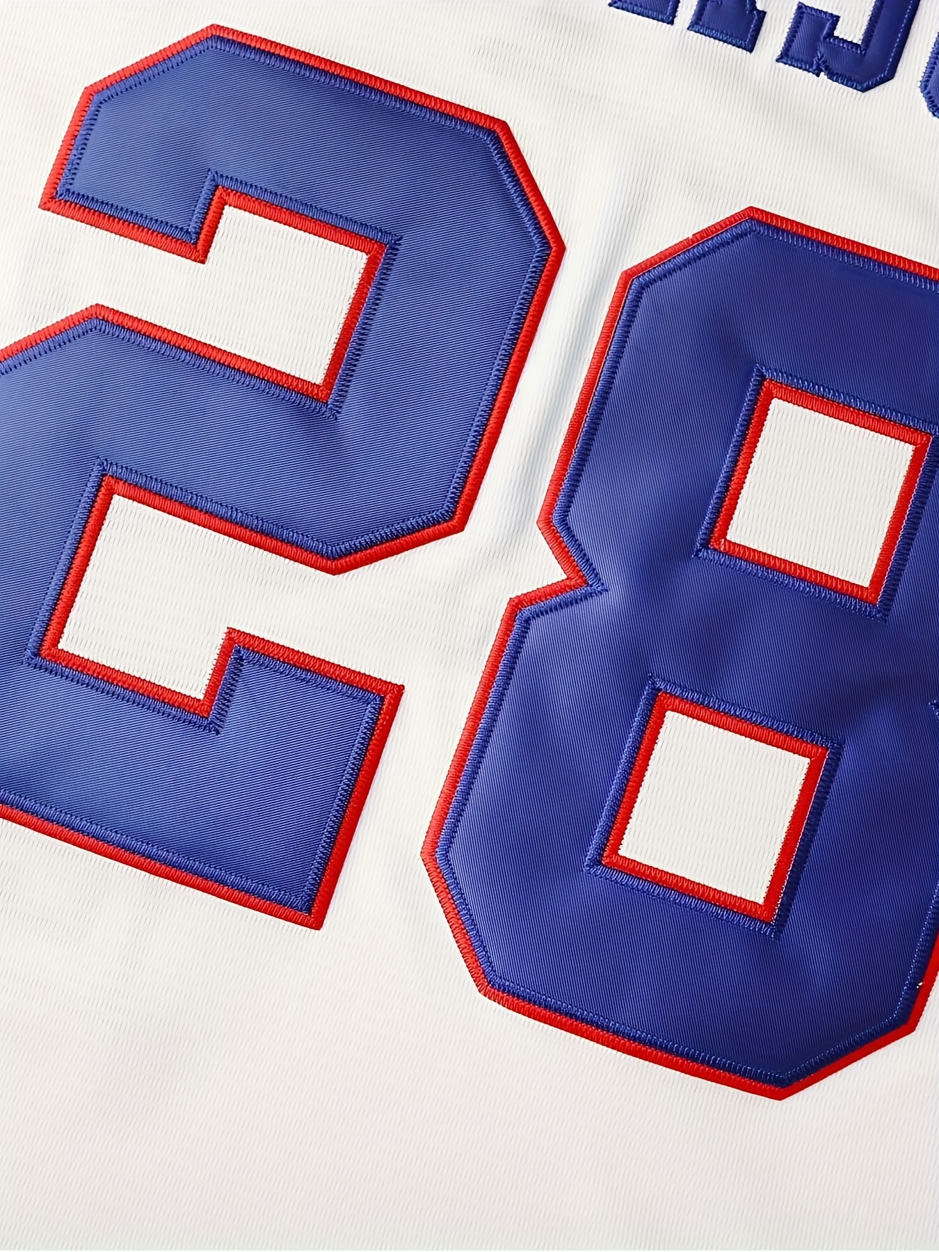 Men's #28 White Baseball Jersey - Breathable Embroidered Polyester, V-Neck & Button Closure, Loose Fit for Team Sports, Casual Outings, and Training, Sizes S-XXXL