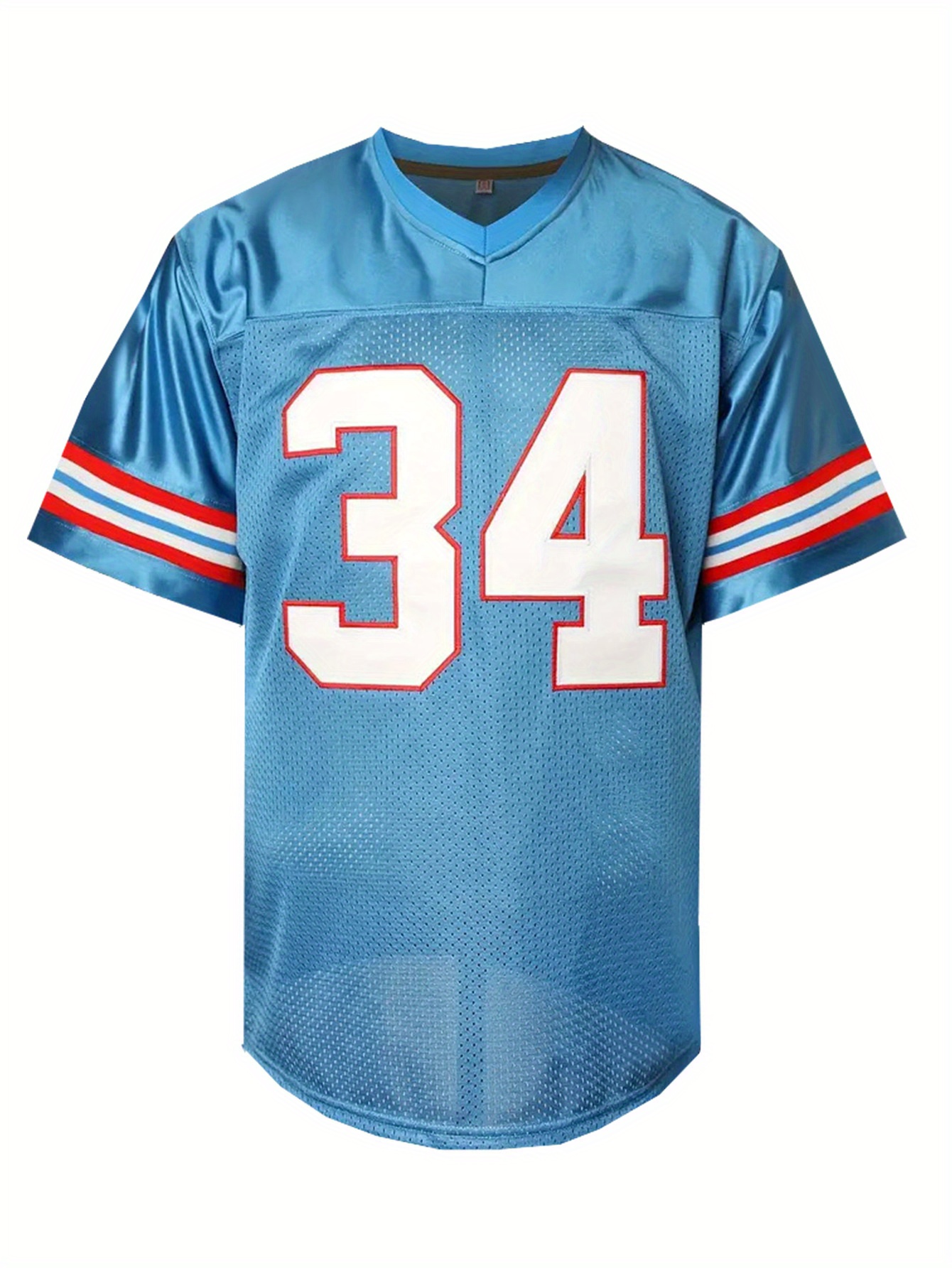 Men's #34 Embroidered Rugby Jersey - Light Blue Loose Fit V-Neck Sports Top, Breathable Polyester for Casual & Game Day, SHLUCKI