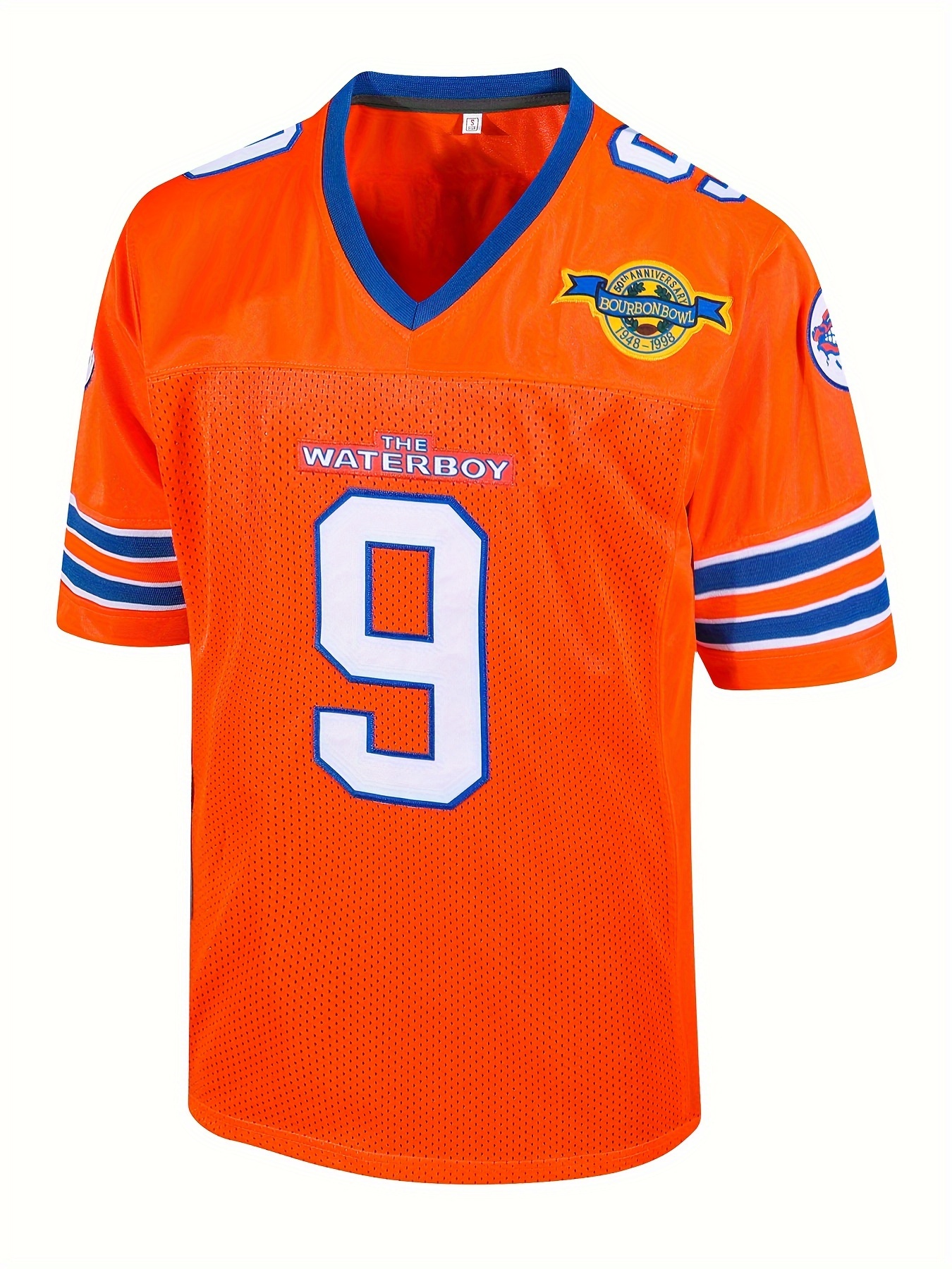 1pc Men'S American Football Jersey - Polyester V-Neck Top with Embroidered Alphabet & Logo, Breathable Knit Fabric, Loose Fit for Sports, Casual, Outdoor Activities - Four Seasons Wear