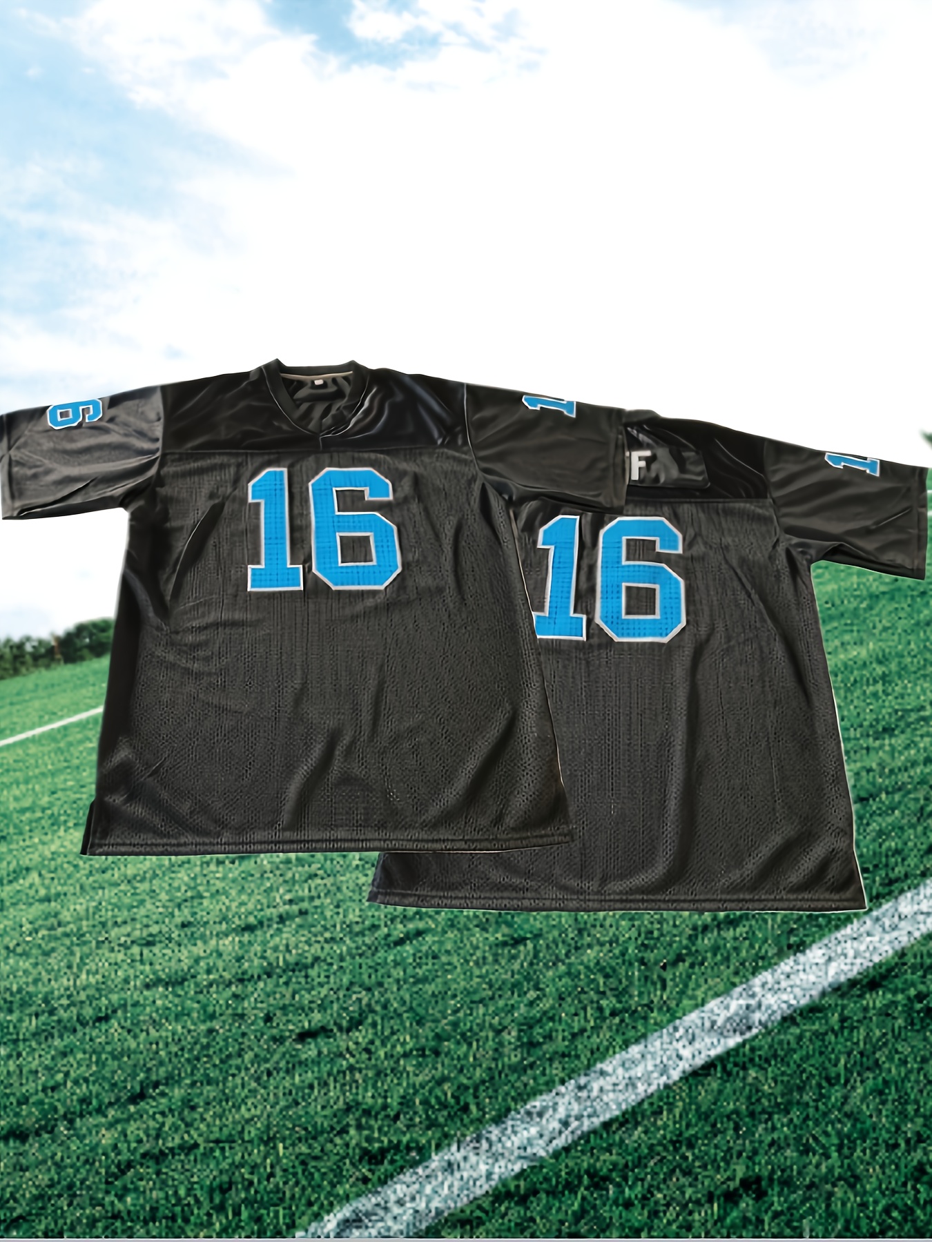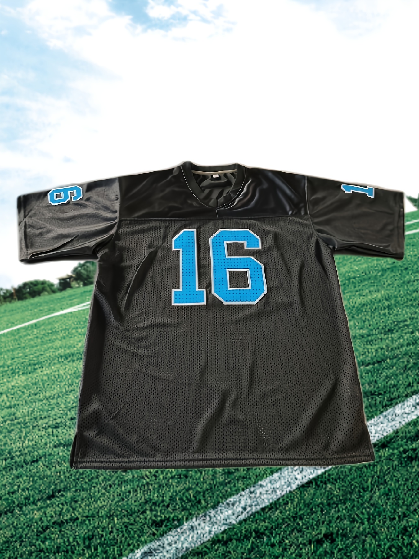 Men'S American Football Top # 16 Black Football Jacket Breathable V-neck Embroidered Polyester Loose Fabric