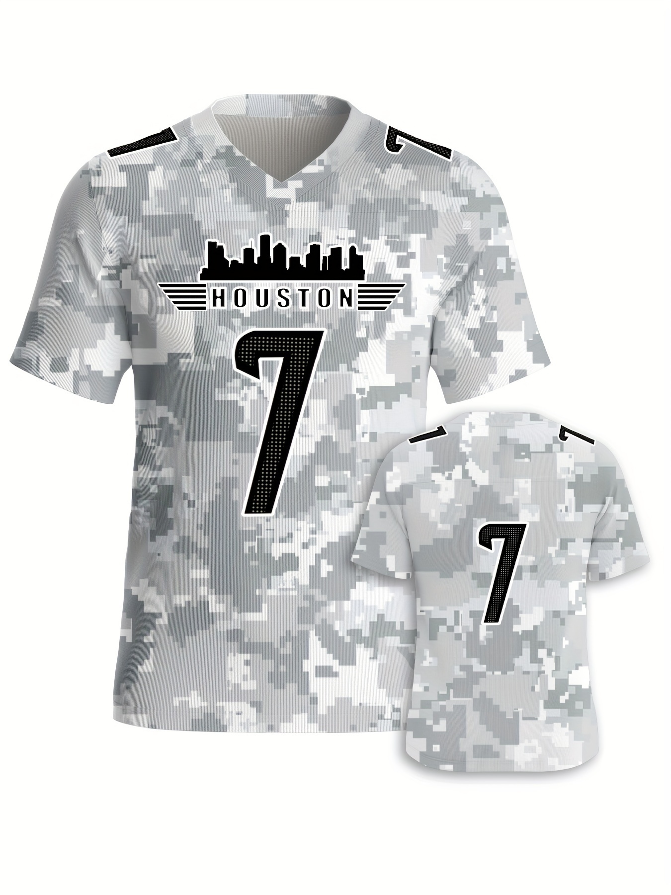 Men's Arctic Camo Houston #7 Polyester Football Jersey, Men V-Neck Sports Shirt With Slight Stretch, Breathable Casual Knit Fabric For All Seasons, Loose Fit Adult, Fans Gift Men, For Training Competition Festival Party Outdoor Sports