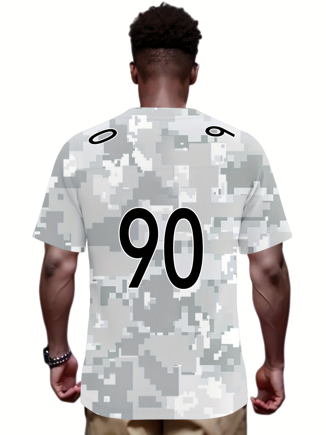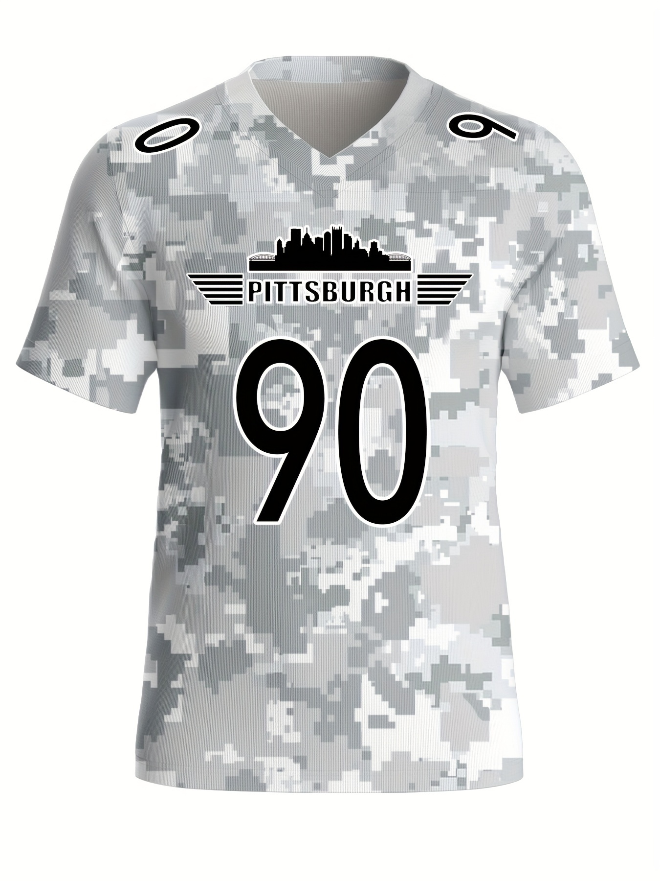 Men's Arctic Camo Pittsburgh #90 Polyester Football Jersey Men, Men V-Neck Sports Shirt With Slight Stretch, Breathable Casual Knit Fabric For All Seasons, Loose Fit Adult, Fans Gift Men, For Training Competition Festival Party Outdoor Sports