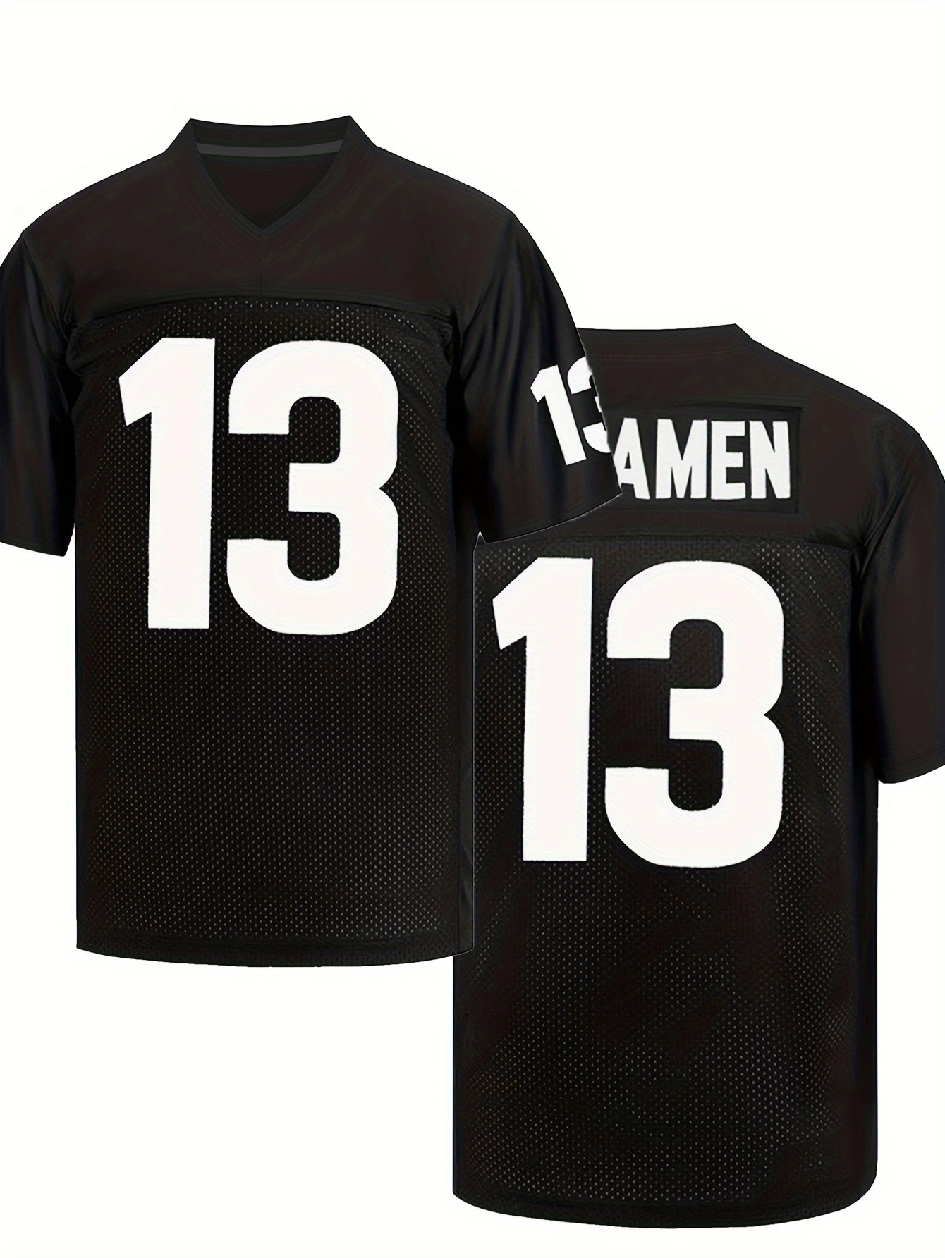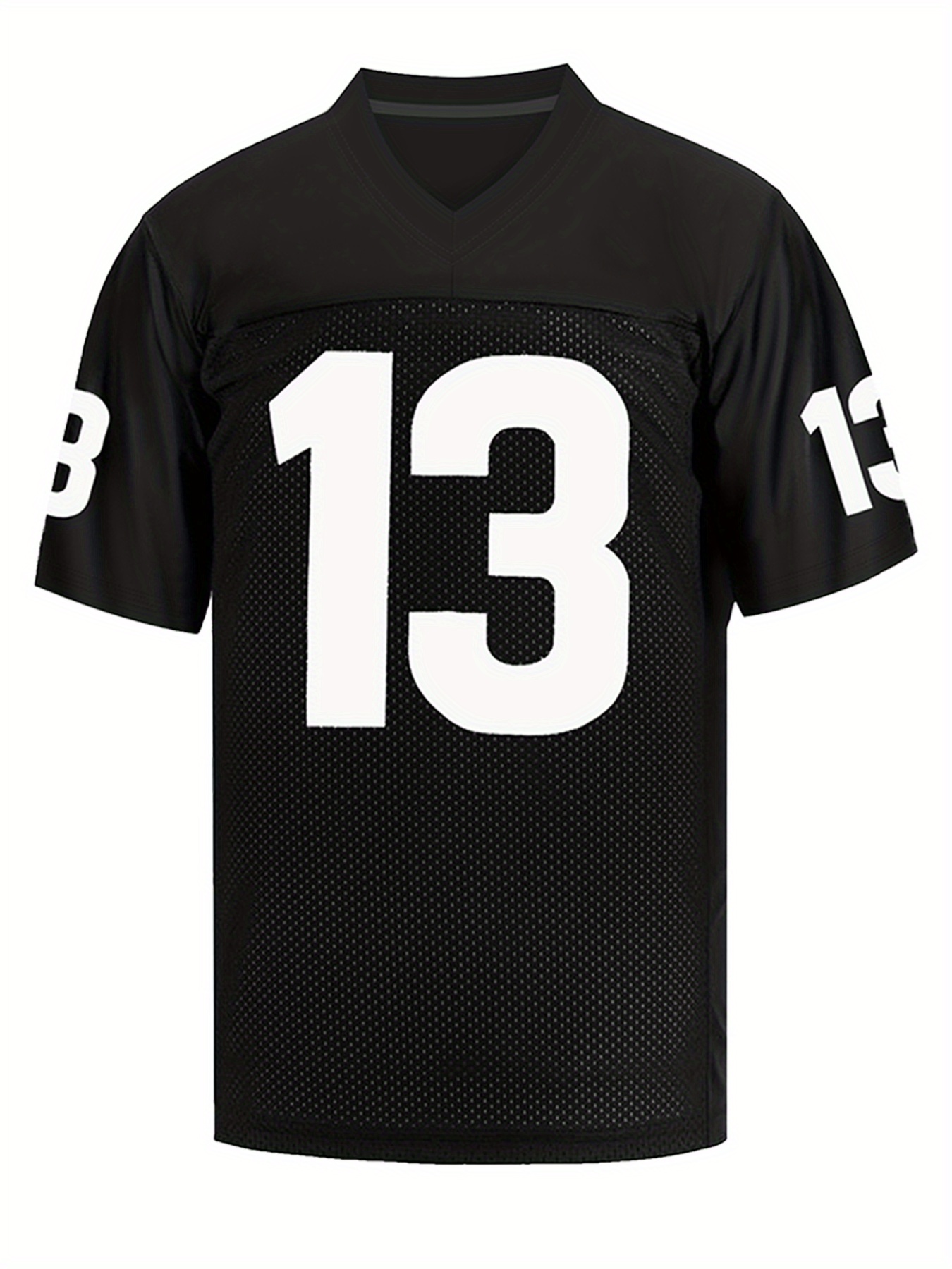 Men's Black #13 Embroidered Rugby Jersey - Loose Fit Breathable V-Neck Top with Mesh Panels for Sports, Casual & Streetwear | All-Season Machine Washable Athletic Shirt
