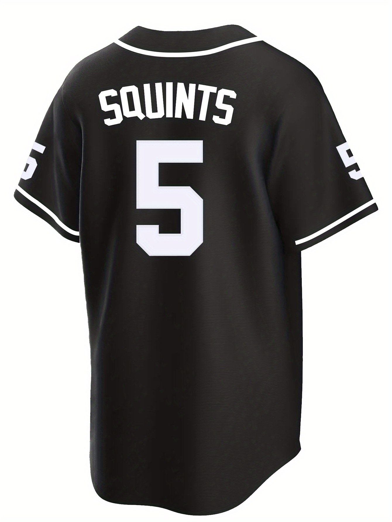 Men'S Black # 5 Baseball Shirt, Classic Letter Embroidery Design, Button style Short Sleeve Breathable Shirt, Training and Competition Category: Men'S Baseball Shirt