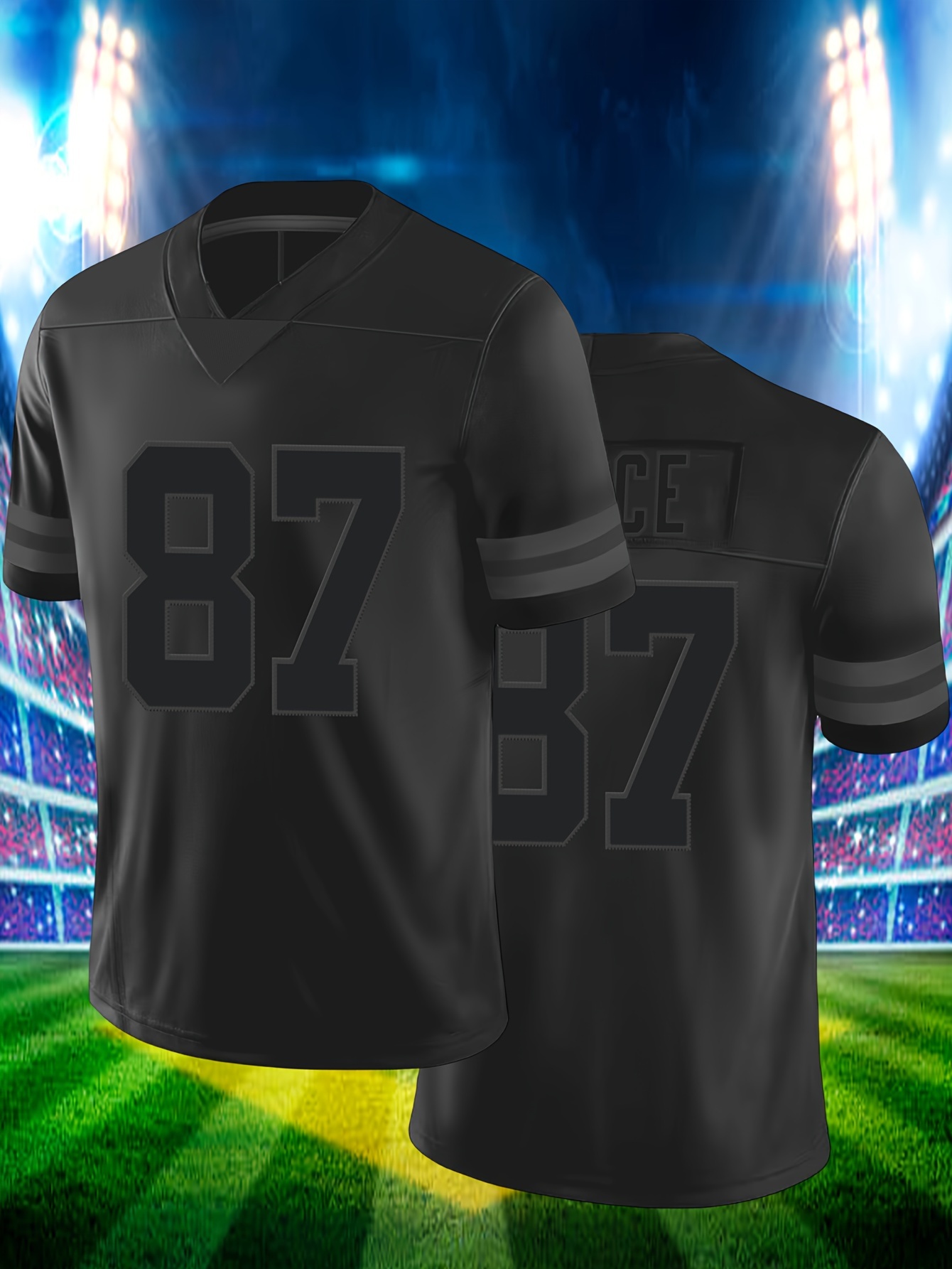 Men'S Black #87 American Football Jersey, Loose Fit, Embroidered, Breathable, Casual Streetwear Style, V-Neck, Slight Stretch Fabric, with Four Seasons Sports Wear, for Adult, Male, and Weekend Casua