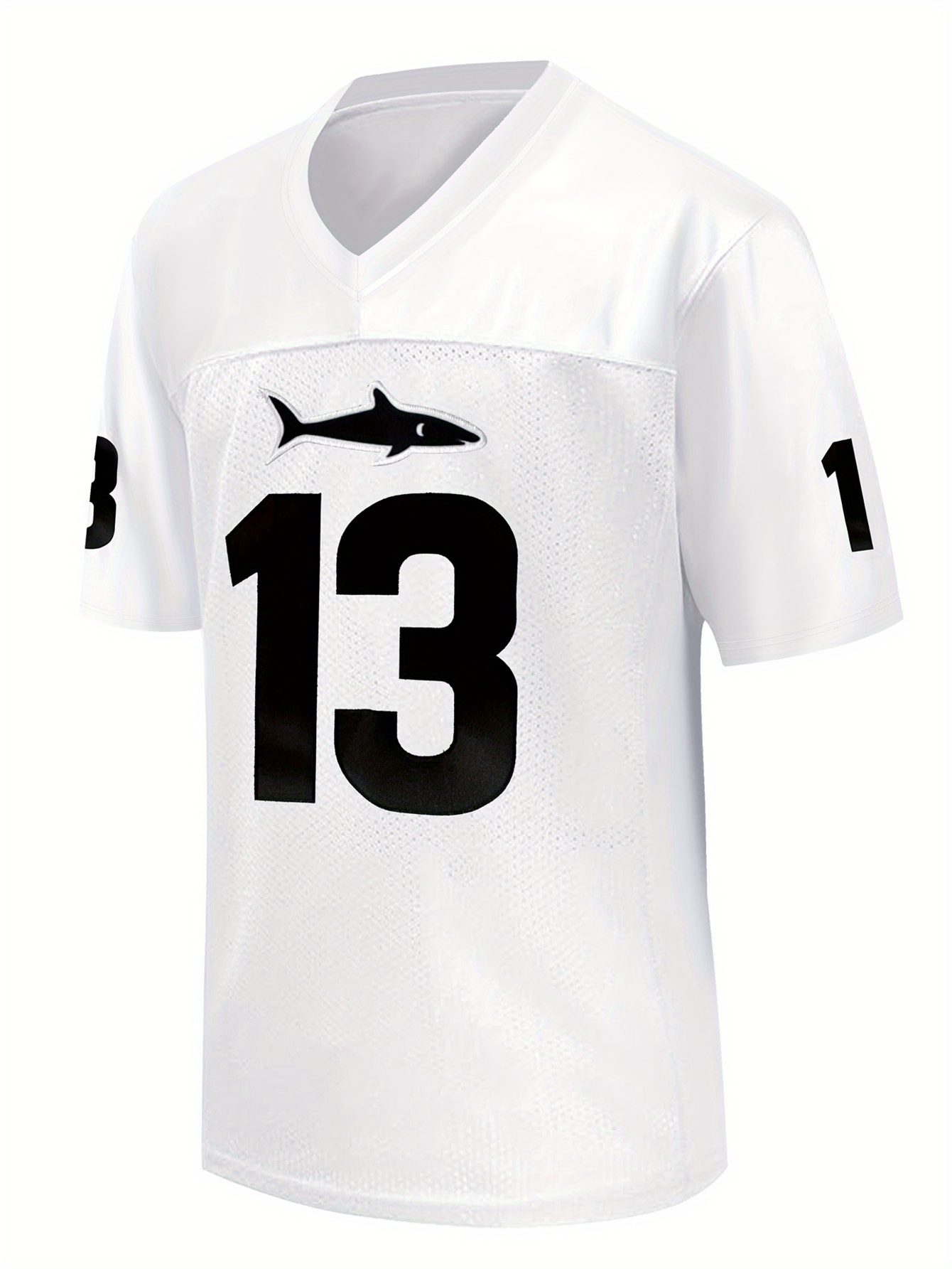 Men'S White # 13 Rugby Shirt with Loose Embroidered Sports, Fashionable, Casual, Street Breathable Rugby Top