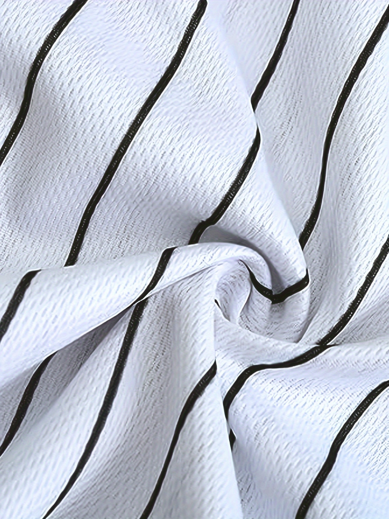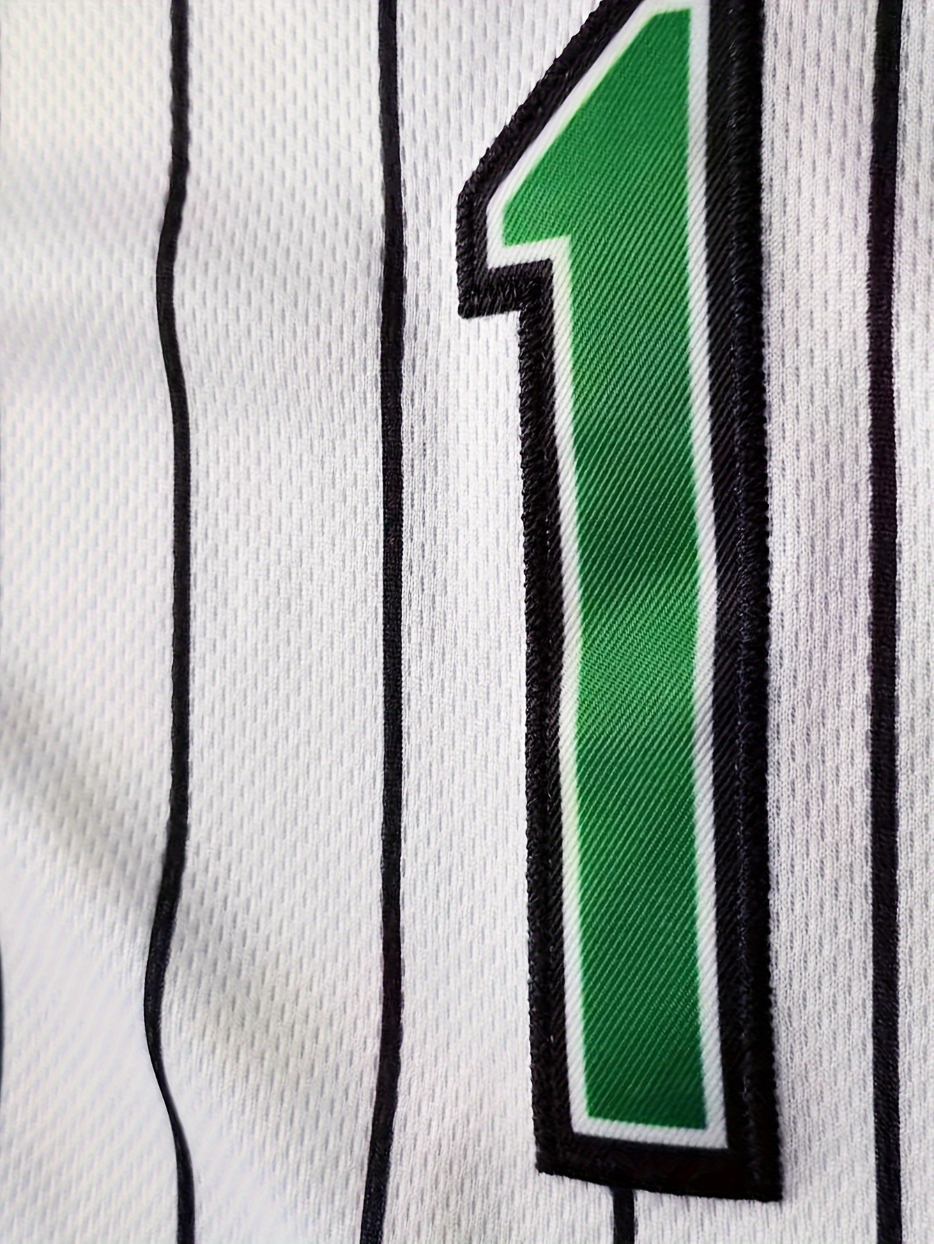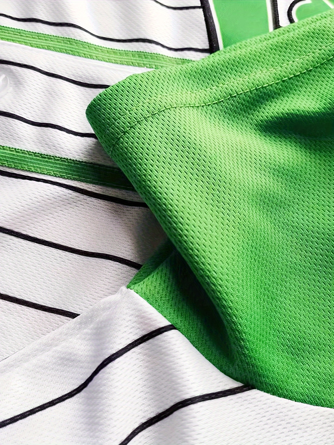 Men's white black striped green patchwork # 1 baseball shirt, classic letter embroidery design, button style short sleeved breathable shirt, used for training and competition