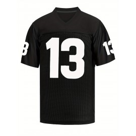 Men's Black #13 Embroidered Rugby Jersey - Loose Fit Breathable V-Neck Top with Mesh Panels for Sports, Casual & Streetwear | All-Season Machine Washable Athletic Shirt