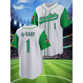 Men's Black And White Striped # 1 Baseball Shirt, Classic Letter Embroidery Design, Button Style Short Sleeve Breathable Shirt, Training And Competition Category: Men's Baseball Shirt