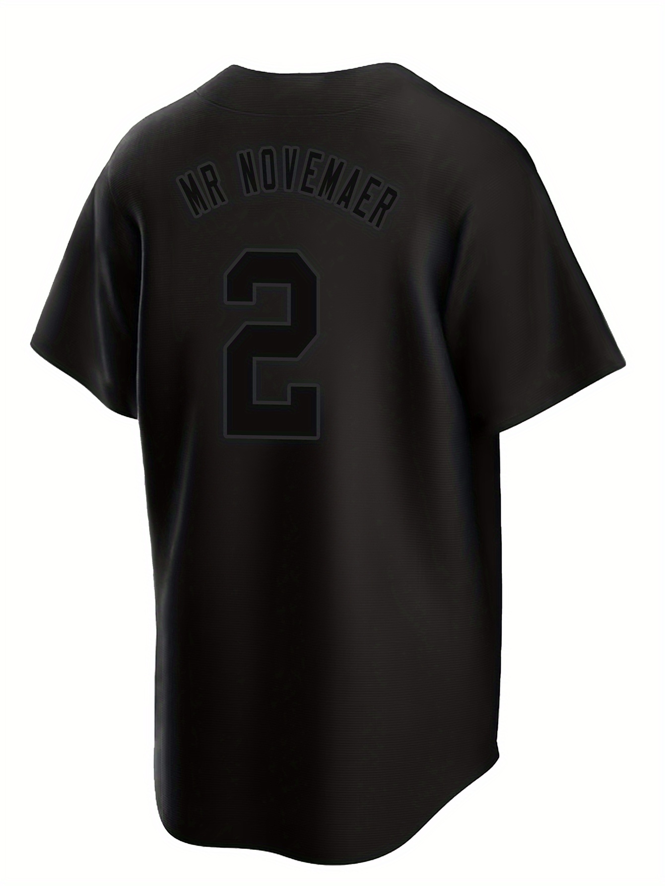 Men's Black #2 Baseball Jersey - Classic Embroidered Letter Design, Breathable Button-Up V-Neck Shirt, Loose Fit for Training, Competition & Casual Wear | All-Season Sportswear for Men & Teens, Comfortable Athletic Wear