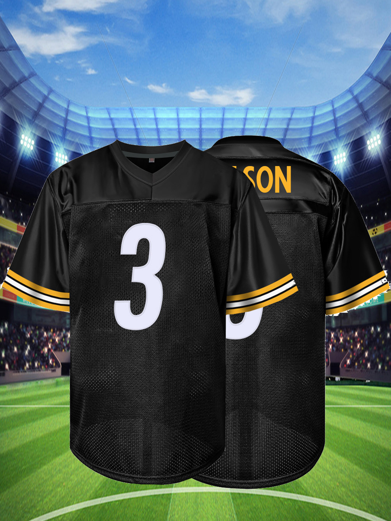 Men'S black # 3 Rugby Jacket Loose Embroidered Sports, Fashionable, Casual, Street Breathable Rugby Top