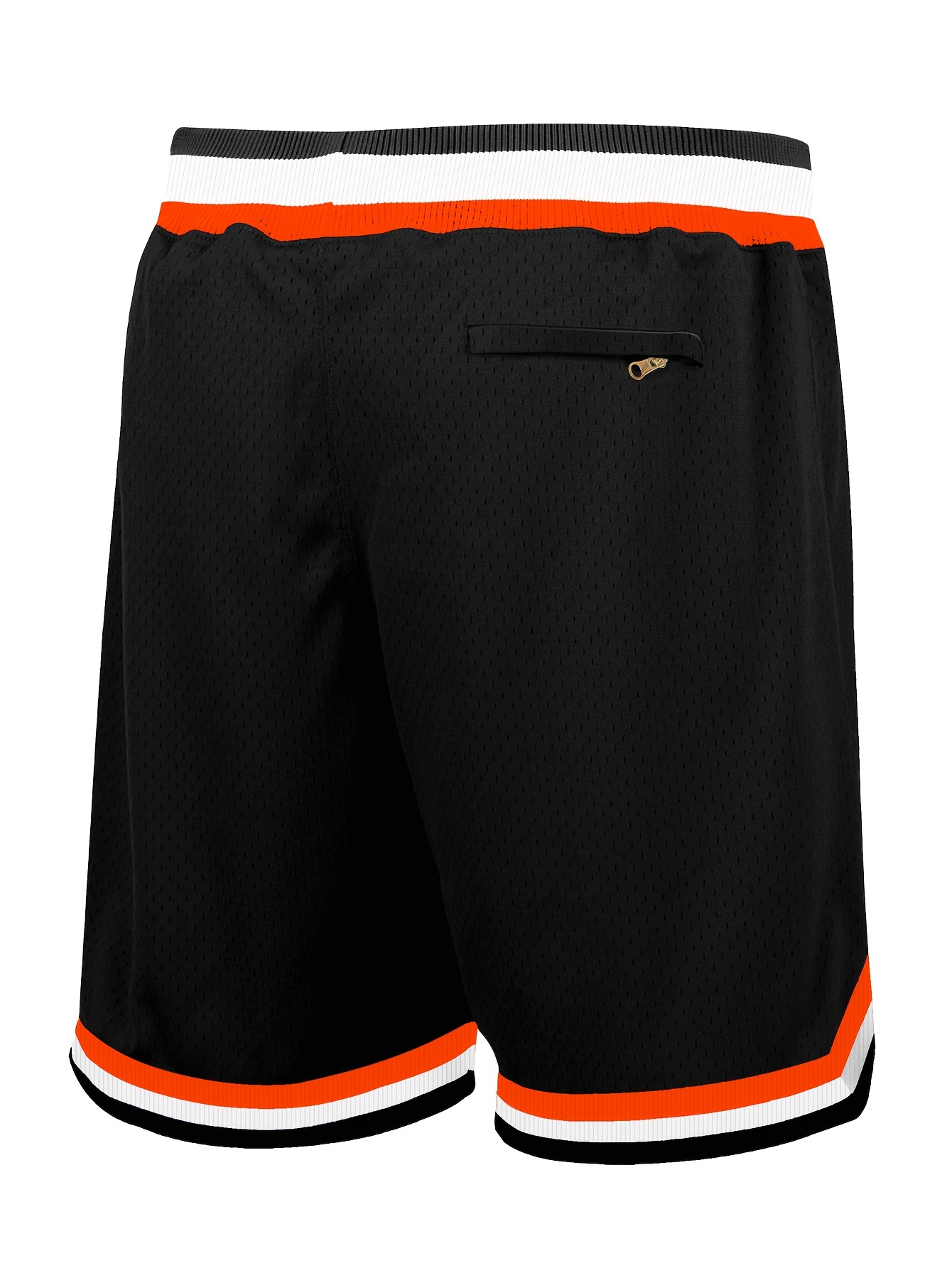 Men's Black Basketball Shorts with Orange & White Striped Accents, "SANTA CLARA" Embroidery, Breathable Polyester, Elastic Waistband - Ideal for Training & Competition