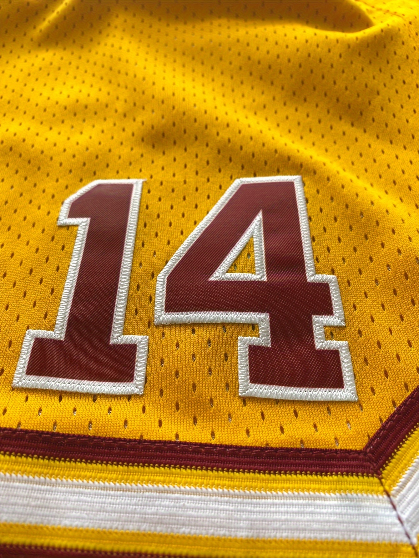 Men's Yellow # 14 Basketball Shorts, Classic Letter Embroidery Design, Breathable Button Style Short Sleeve Shirt, Suitable For Training And Competition